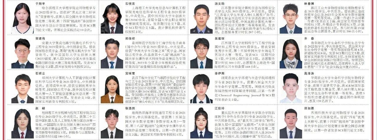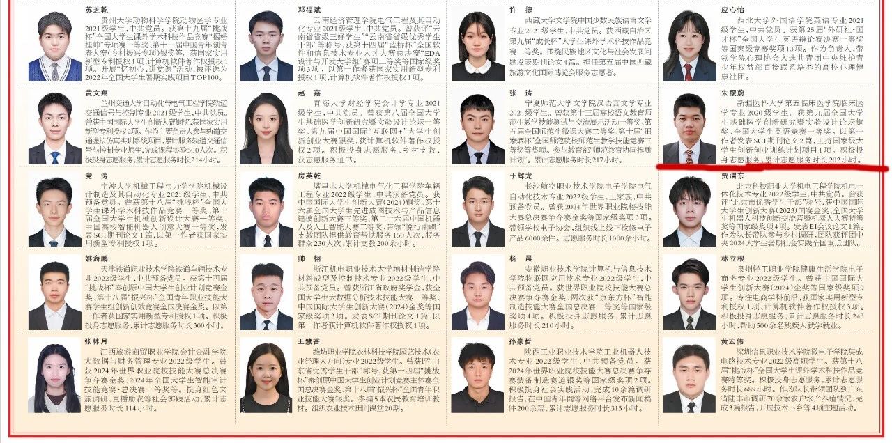 他专注学科前沿,围绕肠道菌群研究,以第一作者发表SCI2篇、中文核心期刊1篇,参与发表核心期刊2篇;主持国家级大学生创新创业项目1项优秀结题。积极投身志愿服务,累计服务时长202小时。参与“寻访红色地标·传播信仰之声”社会实践活动,完成报告数篇,获得校级社会实践“先进个人”荣誉称号。