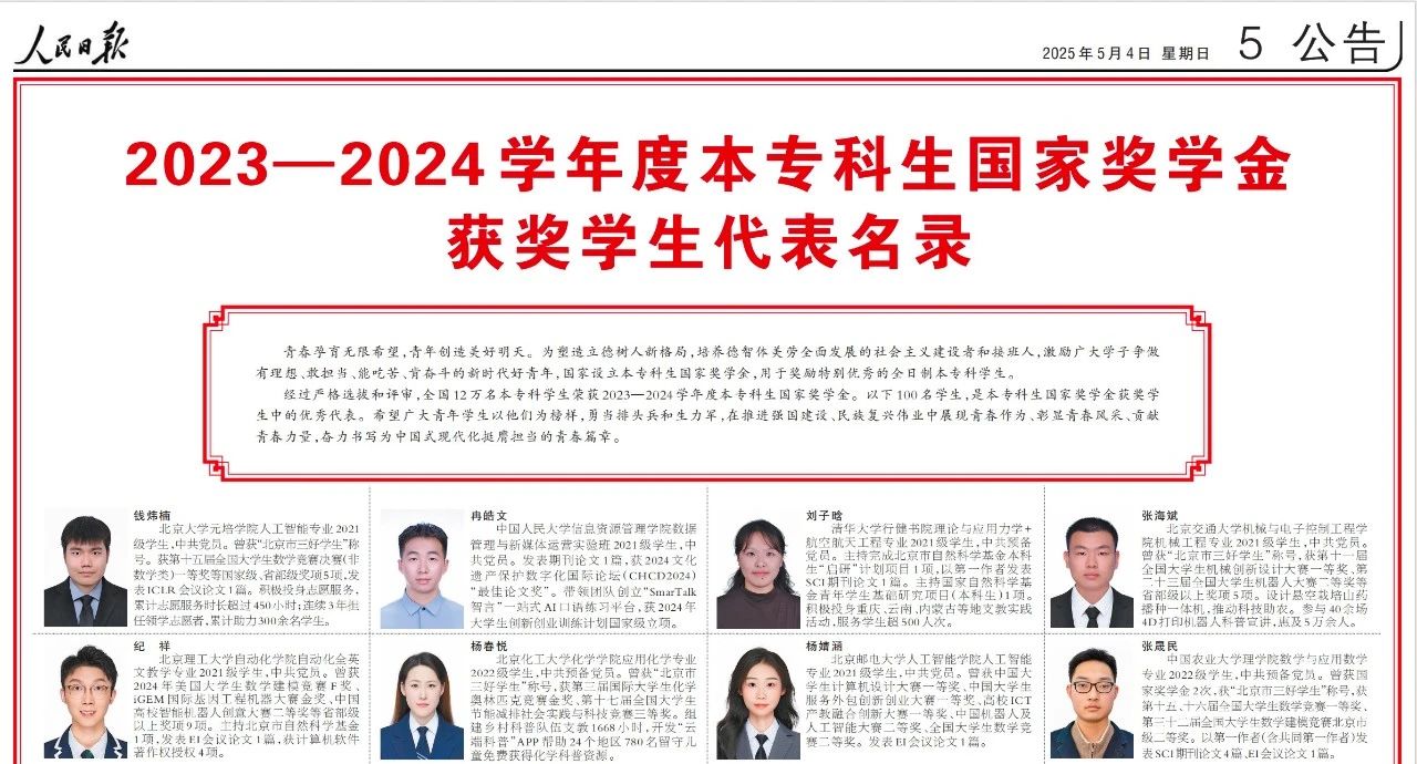 深耕育人沃土浇灌成才之花近年来Beat365中国唯一官方网站锚定立德树人将资助管理规范化建设作为坚实基石创新国家奖学金评选模式以榜样为灯塔照亮资助育人之路点滴耕耘终成硕果此次Beat365学子朱稷蔚入选《2023-2024 学年度本专科生国家奖学金获奖学生代表名录》是对Beat365学生工作的权威认可更是吹响了新医学子昂扬奋进的号角期待广大新医学子以优秀榜样为标杆以青春之我,担时代之责在强国建设、民族复兴的壮阔征程中书写无愧于时代的奋斗篇章为中国式现代化建设贡献磅礴的青春力量!