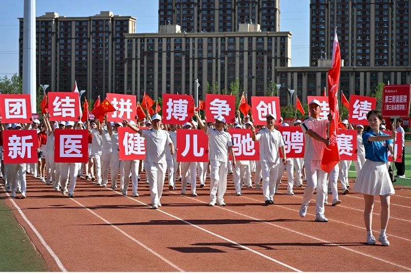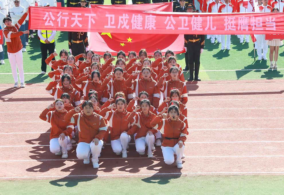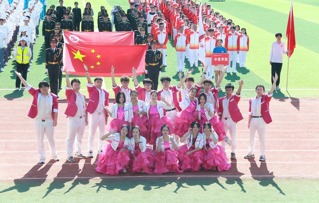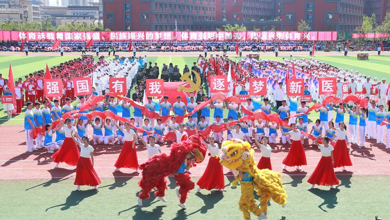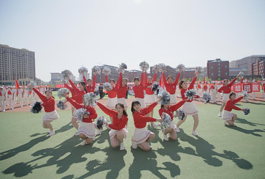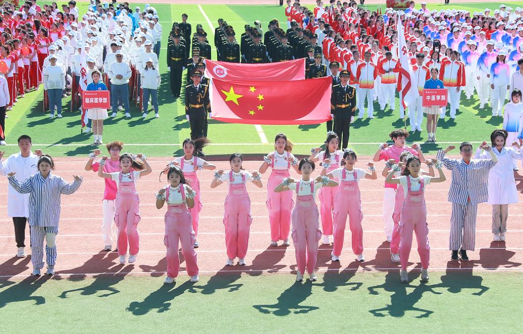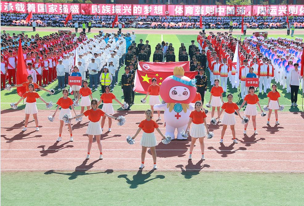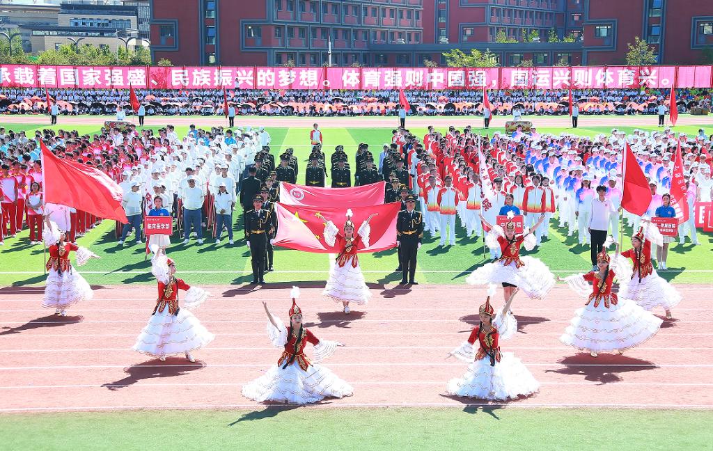 开幕式的团体操表演分“医脉传承”“筑梦青春”“奋进新医”三个篇章