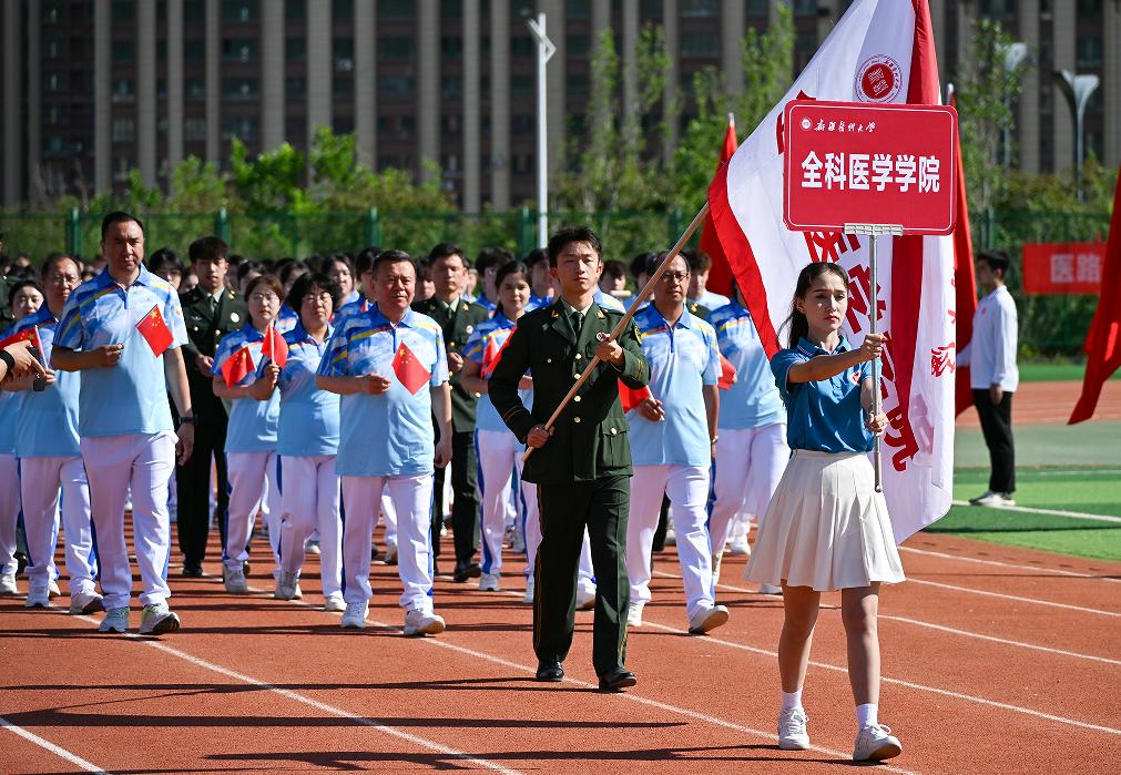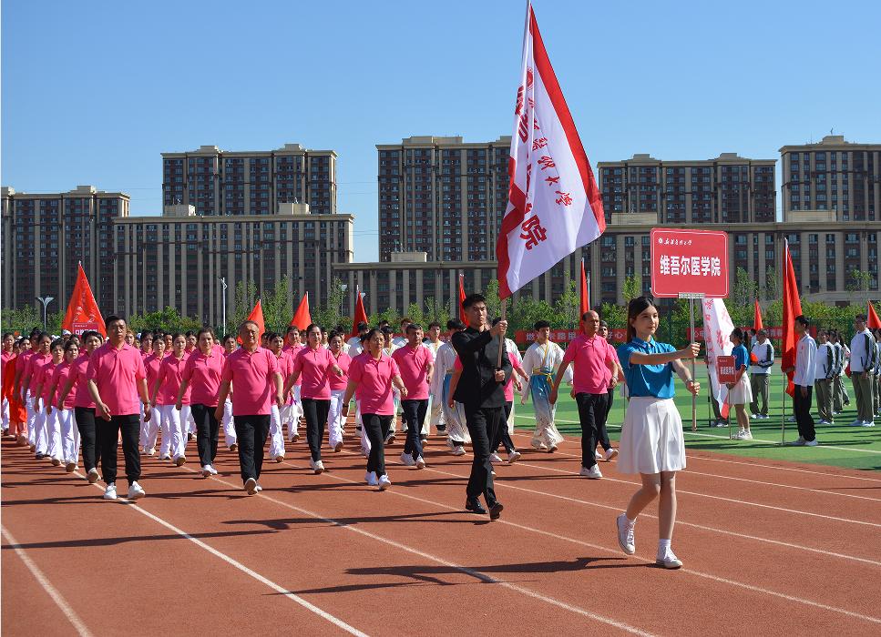 校党委副书记、校长阿吉艾克拜尔·艾萨在致辞时,向运动健儿们送上最诚挚的祝福。他希望全体运动员弘扬奥林匹克精神,以“欲与天公试比高”的豪情突破极限,既要勇攀竞技高峰,更要彰显团结奋进的时代风采。希望裁判团队严守“公开、公平、公正”准则,以“毫厘不失”的专业精神护航赛事。希望全校师生走向运动场,让强健体魄成为终身习惯,让体育精神滋养医者仁心,共同绘就德智体美劳全面发展的育人画卷。