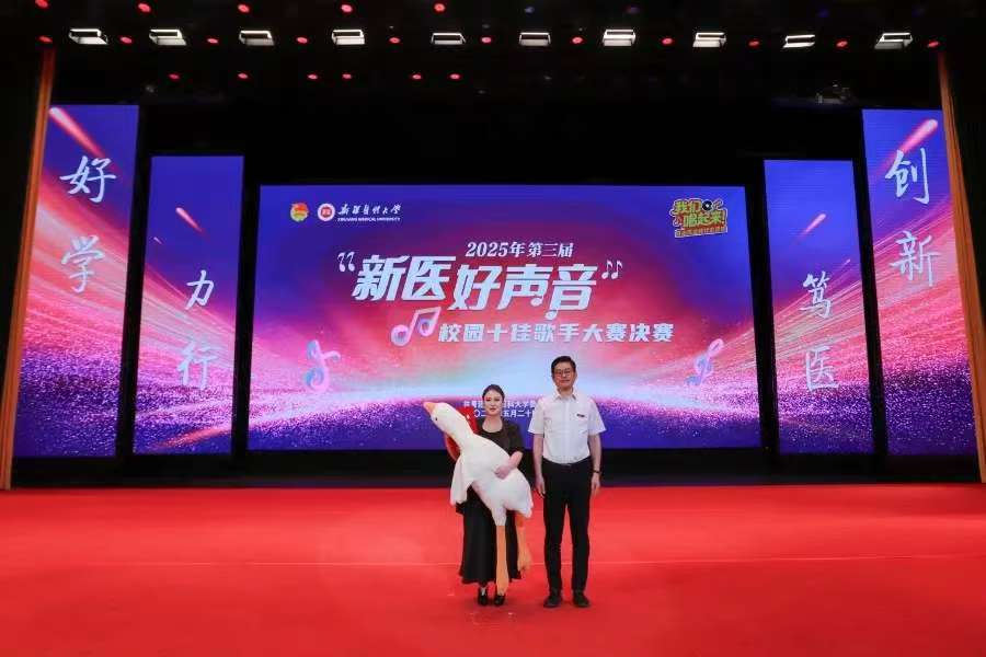 十位选手历经46天层层选拔,以歌声为剑、旋律为盾,在舞台上绽放青春力量,为现场观众及线上直播观众带来了一场视听盛宴。最终产生第三届“新医好声音”校园十佳歌手。(左右滑动查看更多)