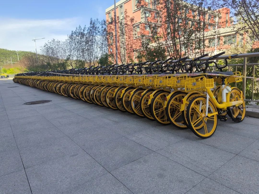 校园里出现了整齐排列的黄色单车