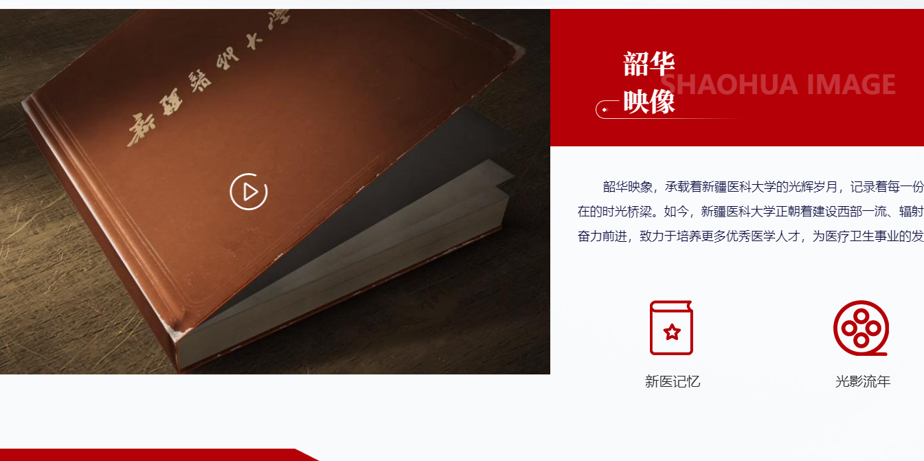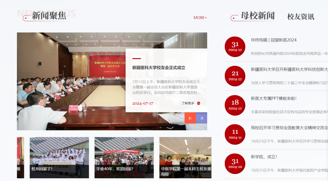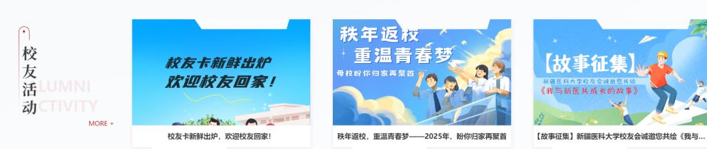 发布学校宣传片、新医记忆等主题文章、主题相册、新医校友电子期刊等,记录每一份新医记忆。