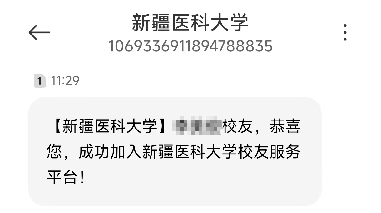 审核通过后,将会收到申请成功短信通知。再点击“新医校友”小程序即可查看自己的校友卡。