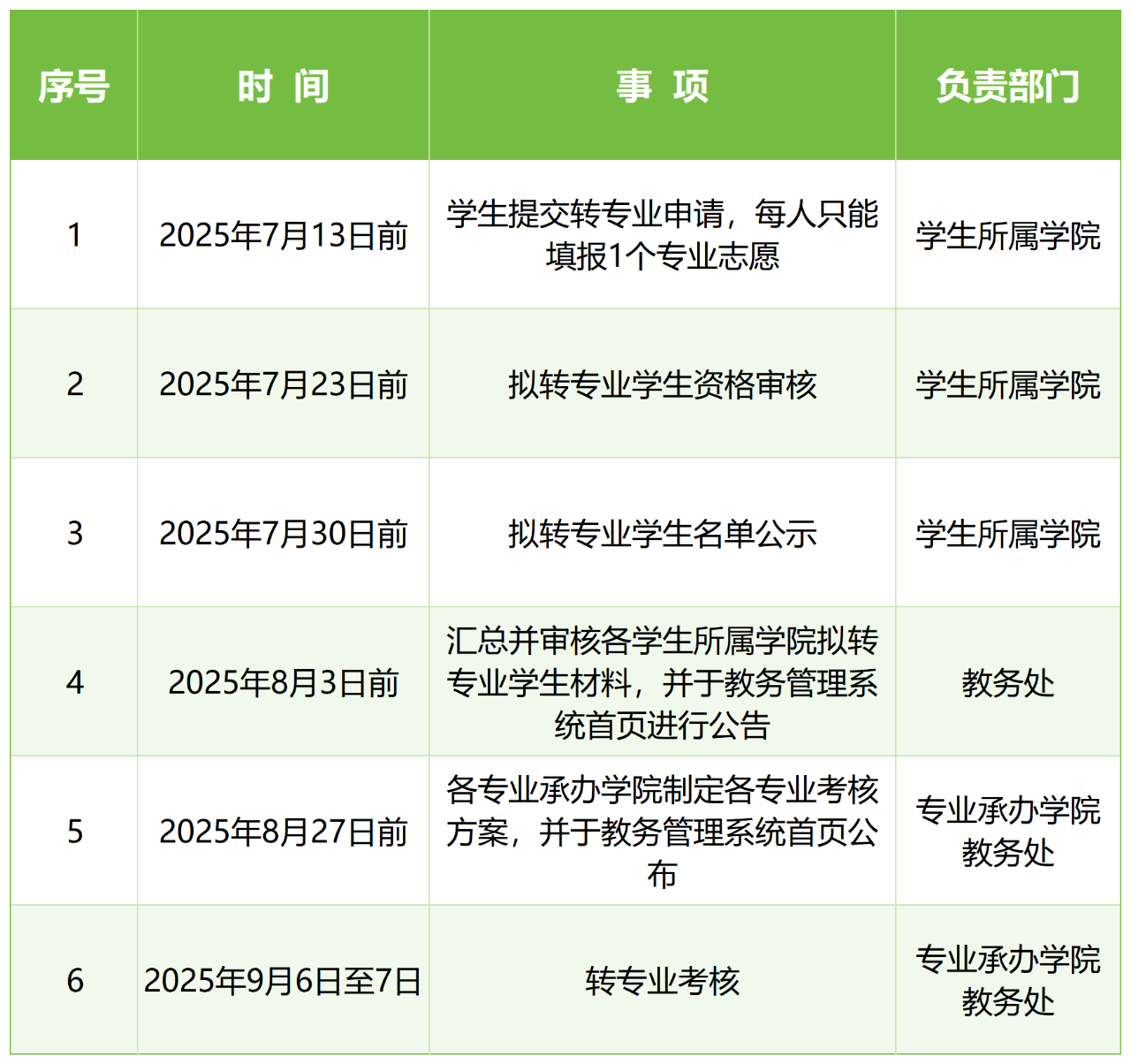 二、转专业工作时间安排