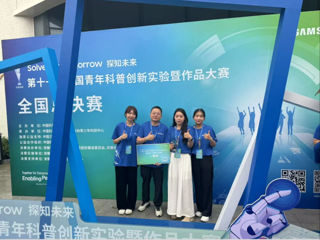 7月28日至31日,第十一届全国青年科普创新实验暨作品大赛全国总决赛在安徽合肥举行,Beat365中国唯一官方网站药学院钱婕、 秦亚迪、 李琴琴、 摆雅文四位同学,在姚军老师的指导下精心打造的作品《基于适配体修饰 NH2-MIL-88B纳米酶的三维纸基装置用于食品中地塞米松超灵敏检测》项目,荣获创意作品“人机协作”大学组全国一等奖的好成绩!
