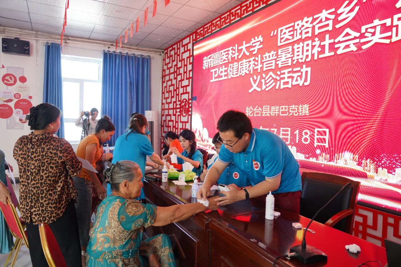公共卫生学院“医路杏乡”暑期社会实践团队走进轮台县,开展系列健康科普与义诊活动。团队抵达轮台县人民医院参与联合义诊,随后奔赴群巴克镇、阳霞镇乡村基层,以及敬老院、轮南轻烃厂和中石化基地等多地,全面提供免费义诊、健康体检、环境监测及科普讲座等。
