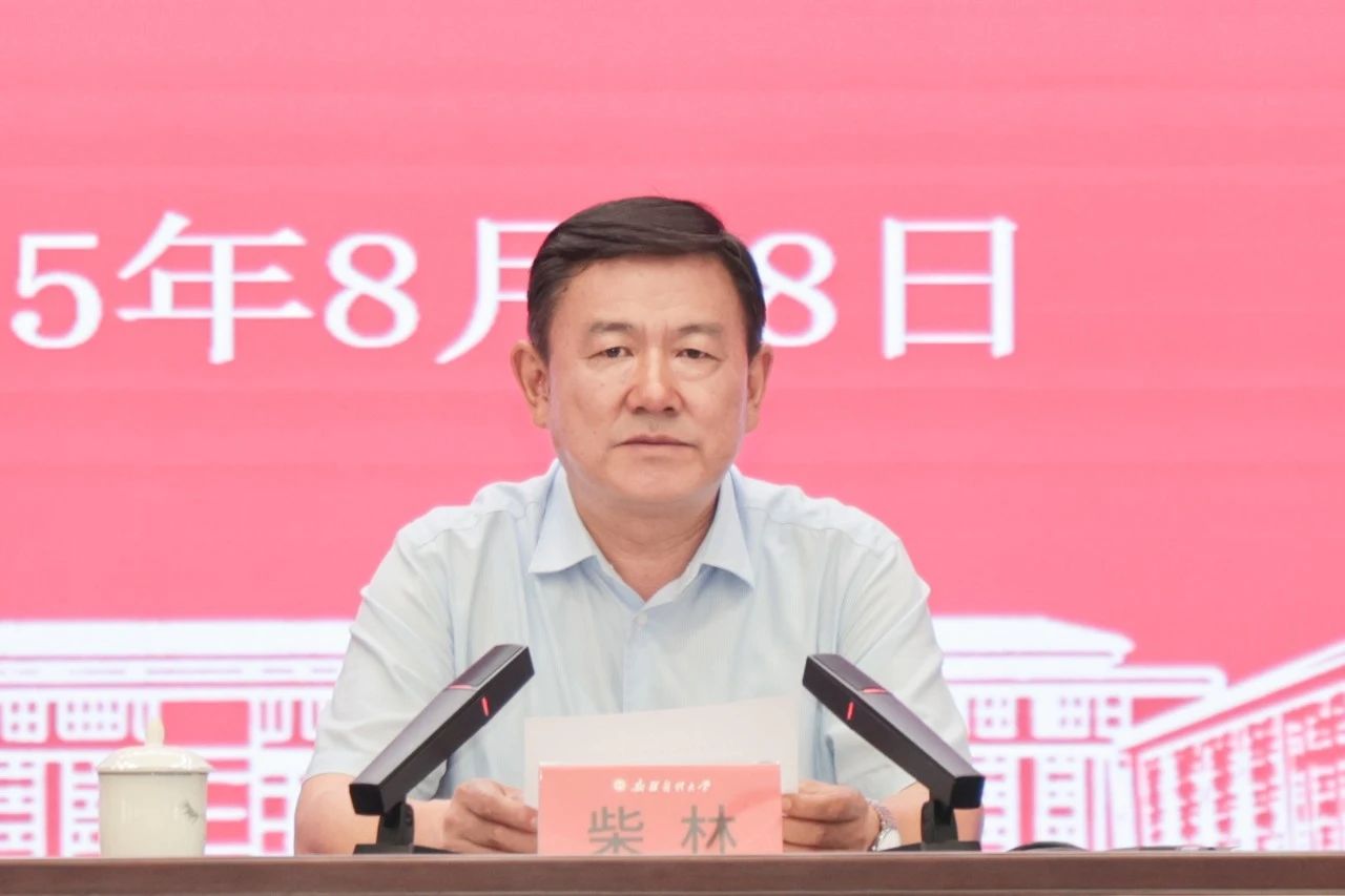 校党委书记柴林系统总结了学校上半年的工作成效,实事求是地分析了当前存在的问题,并对下半年重点任务作出部署。他强调,全体干部教师要深入学习贯彻习近平总书记系列重要讲话和指示批示精神,切实把思想和行动统一到党中央决策部署上来,以实际行动巩固拓展学习教育成果,确保新学期各项工作开好局、起好步。一是聚焦社会稳定和长治久安总目标,夯实校园安全稳定根基。要始终把稳定放在首位,统筹高质量发展和高质量安全,持续巩固校园和谐稳定、安全有序的良好局面。二是强化思想引领,筑牢立德树人政治根基。坚持用习近平新时代中国特色社会主义思想铸魂育人,系统推进“八育”融合的思政工作体系,深入挖掘专业课程、文化课程中的思政元素,有机融入“红医精神”“新医故事”。充分发挥医学专业优势,打造具有医学特色鲜明的校园文化。三是深化教研医协同,全面提高人才培养质量。持续优化学科专业布局,构建“主干专业+支撑专业+交叉专业”的金字塔式结构,重点布局智能医学工程等新医科专业。大力实施“卓越医师”“拔尖创新人才”培养计划。强化附属医院教学主体功能,探索以高水平临床教育推动高质量医学人才培养和高水平研究成果产出的有效路径。四是坚持学科牵引,服务国家和区域发展战略。紧扣自治区“五大战略”定位,制定学科“一对一”培育支持计划,大力实施科研创新团队建设、青年科技拔尖人才培养、重大科研项目培育、重大科研成果培育“四大工程”,围绕基础、临床、药物、公共卫生、中医药(民族药)、医工交叉“六大领域”,集中力量在重大疾病防治、民族医药等领域开展有组织科研,力争产出标志性成果。五是坚持人才为本,完善人才工作“引育留用管”工作质效。把人才作为学科建设的核心支撑,建立学科带头人制度,按照领军人才、骨干人才、基础团队三个层次构建学科人才队列。逐步调优教师队伍结构,打造一支高素质、专业化、创新型的教师队伍。