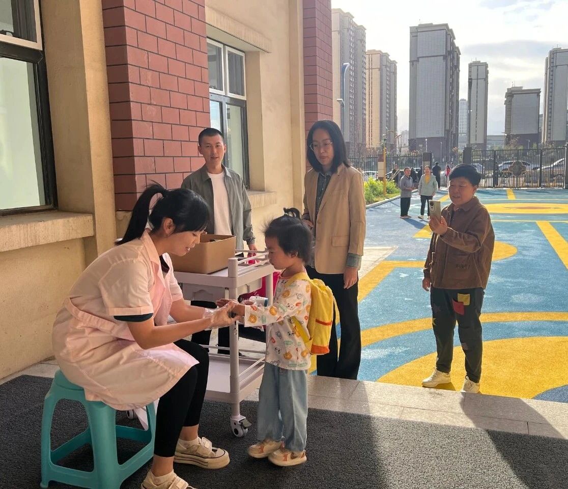 幼儿园内外洋溢着温馨与欢快的气氛,孩子们在父母的陪伴下,怀着好奇与期待,迈出了走向集体生活的第一步,园区门口,老师们用灿烂的笑容迎接每一位孩子的到来。