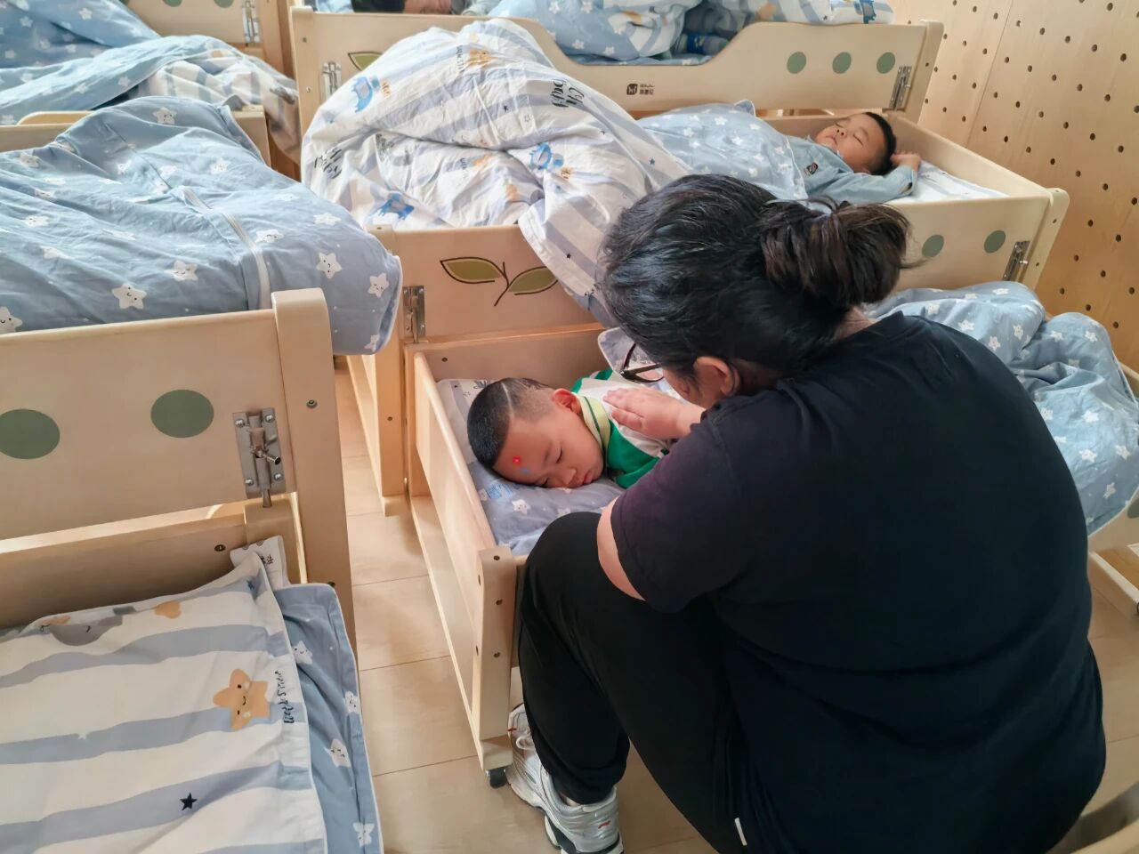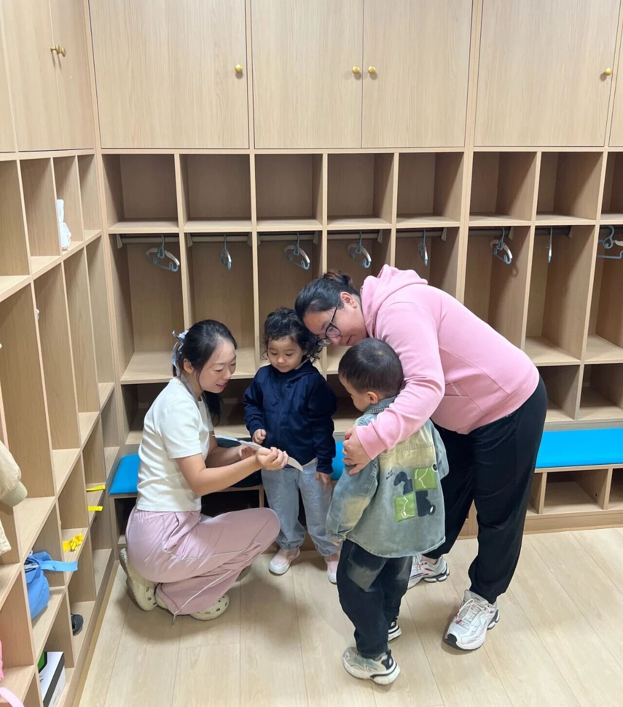 教室里,小朋友们围坐在色彩缤纷的活动区,在老师的耐心引导下,开始了有趣的手工制作。他们用稚嫩的小手揉捏彩泥,专注地完成属于自己的作品,眼中闪烁着创造的喜悦。随后,老师带领大家进行集体互动活动,孩子们手拉手围成一圈,伴随着轻快的儿歌节奏一起拍手、律动。在欢声笑语中,他们逐渐融入了热闹的氛围,跟着节奏摇摆身体,感受着融入集体的快乐。