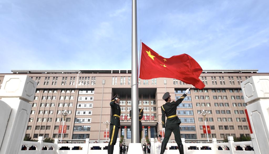 升国旗仪式由校党委副书记、校长阿吉艾克拜尔·艾萨主持。全体在家校领导,副处级以上干部,各职能处室、学院教职工代表,研究生及本科生代表参加了升国旗仪式。