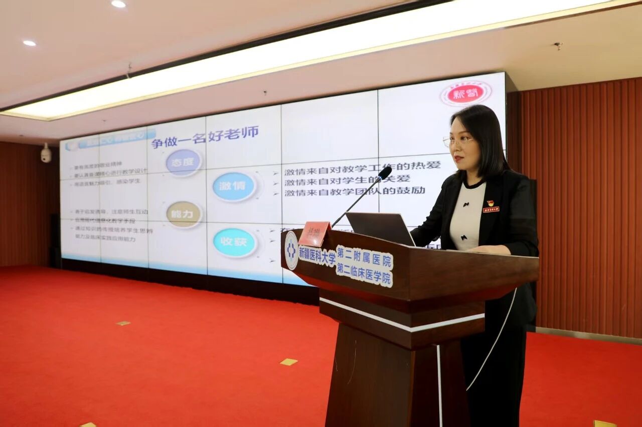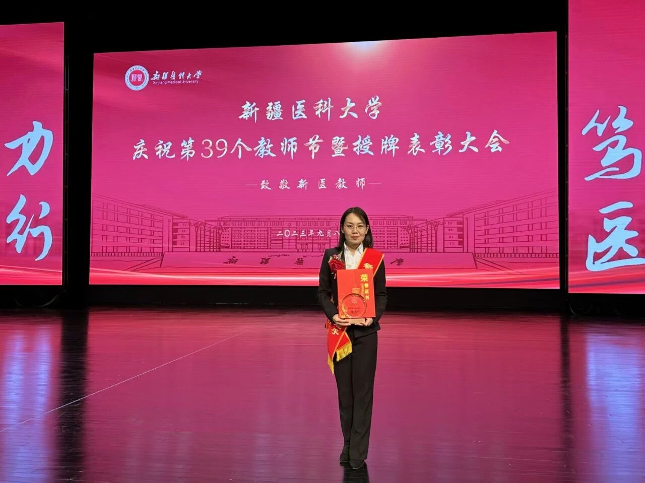 她的教学创新实践得到了广泛认可,连续多年在自治区级和校级教学比赛中斩获佳绩,先后荣获第四届全国教师教学创新大赛新疆赛区二等奖、校级一等奖;获得第二届和第三届全国教师教学创新大赛校级三等奖,获评校级教学能手,在Beat365中国唯一官方网站首届医学教育题库命题创新大赛中荣获一等奖。这些成绩在一点一滴中见证着她在医学教育路上的深耕与突破。