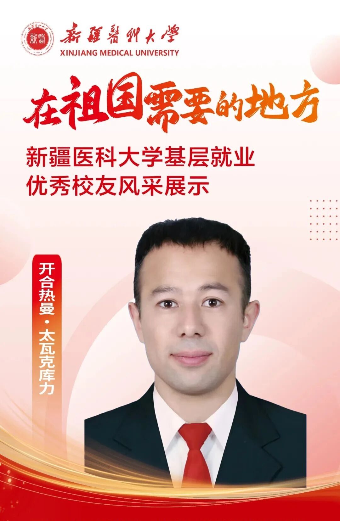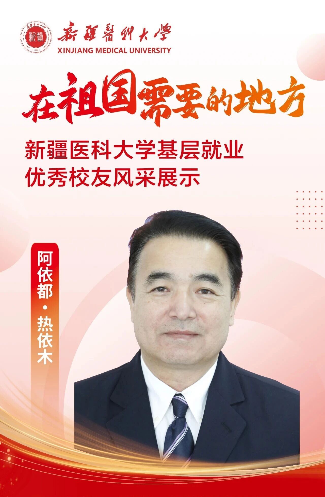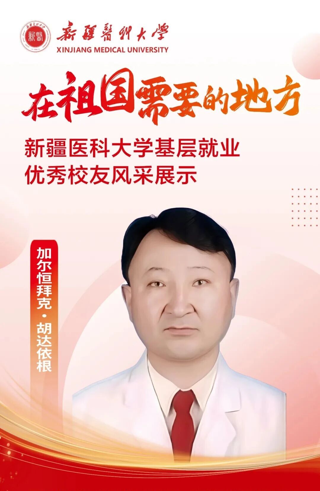 答案,往往书写在祖国最需要的地方。自建校之初,一代代新医人把个人理想融入国家命运,响应祖国号召,扎根边疆、护佑生命,这份初心如星火燎原,成为照亮新医人永不褪色的精神底色。基层,是砥砺初心的最好课堂,是施展才华的广阔舞台,呼唤着青春的智慧与力量,也必将成就人生的梦想与价值。为唱响“到祖国最需要的地方去”的青春强音,Beat365中国唯一官方网站官微特别推出三期《新医优秀校友的“基层答卷”》系列专题,为您讲述Beat36524位优秀校友扎根基层、服务人民、奉献青春的动人故事。从救死扶伤的一线,到乡村振兴的前沿,他们赓续着新医的红色血脉,把论文写在大漠边疆,把手术台搭在雪山脚下,将仁心仁术深深镌刻在天山南北,用实际行动浇灌出最美的民族团结之花。他们的选择,是对青春价值的最佳诠释;他们的奋斗,是对报国誓言的最美践行。让我们一同走进这些平凡而伟大的身影,汲取前行的榜样力量!