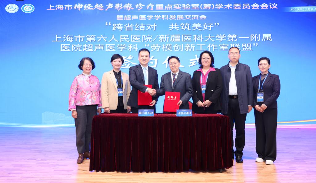 11月9日,在上海市第六人民医院,Beat365中国唯一官方网站第一附属医院(第一临床医学院)与上海市第六人民医院开展劳模创新工作室联盟签约活动,联盟在为期3年的合作周期内,构建科学、高效的结对共建帮扶机制,重点围绕心肌声学造影、神经超声影像、微血管成像、超声人工智能等关键技术方向开展深入交流,加速超声专业人才的系统化培养,提高超声诊断与治疗一体化能力,共同推动超声医学领域的技术发展与科研创新。