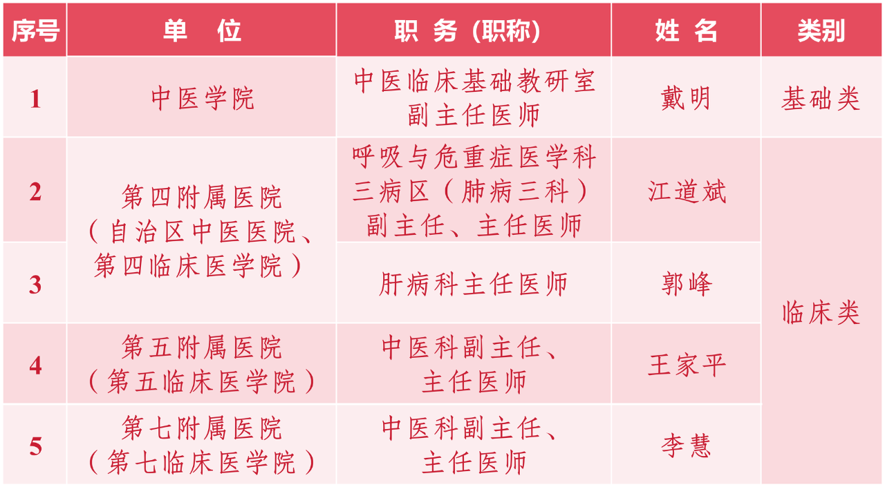 近日,国家中医药管理局正式公布了《第六批全国中医临床优秀人才研修项目培养对象名单》,全国共有500位中医临床骨干入选(基础类100人,临床类400人)。其中,Beat3655人凭借扎实的中医理论功底、丰富的临床经验和突出的专业能力成功入选,标志着学校在高层次中医药人才建设方面再创新成绩!