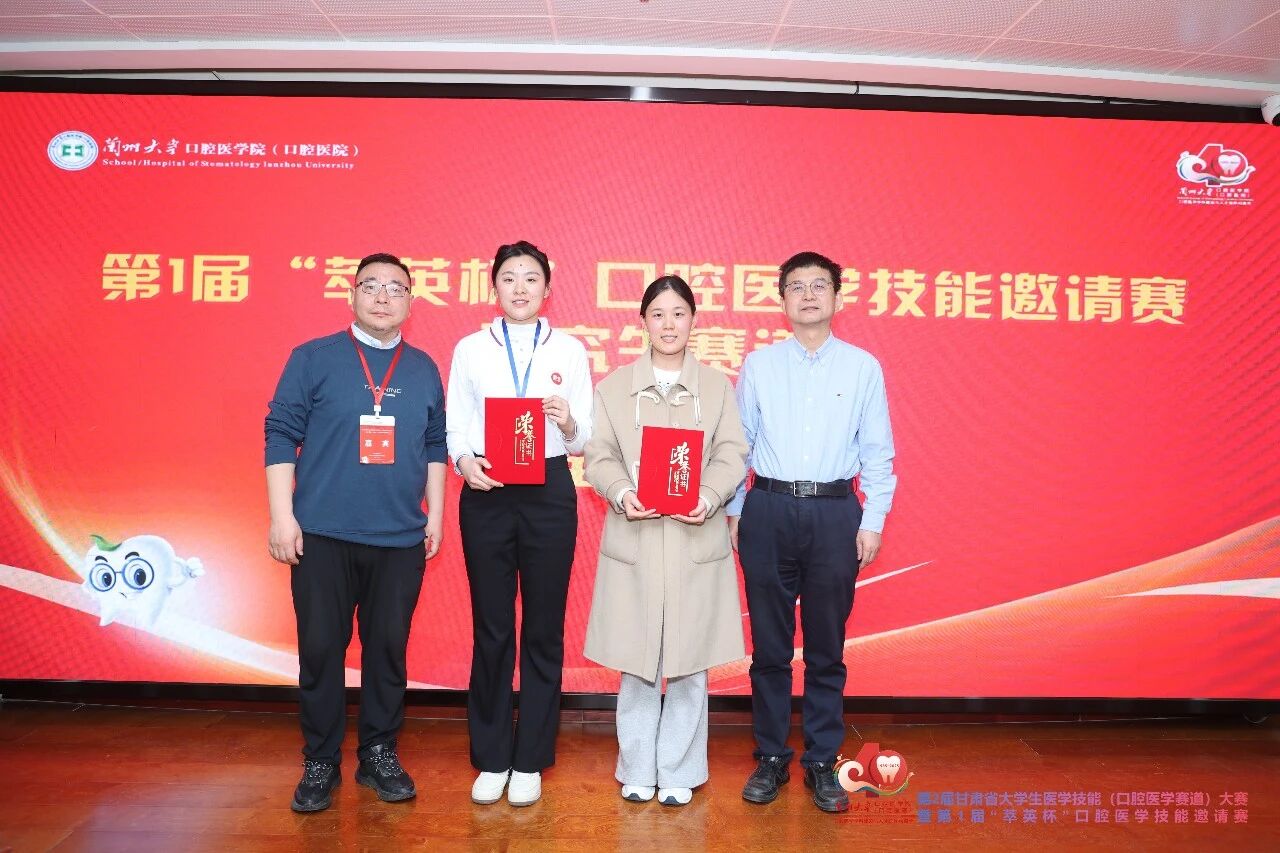 近日,由兰州大学主办的第一届“萃英杯”口腔医学技能邀请赛圆满落幕,Beat365口腔医学专业2021-1班徐燕翔同学荣获本科生组至善奖(三等奖),2023级口腔硕士研究生班于甜甜同学不仅斩获研究生组至精奖(一等奖),也在临床思辨赛道中获得至善奖!