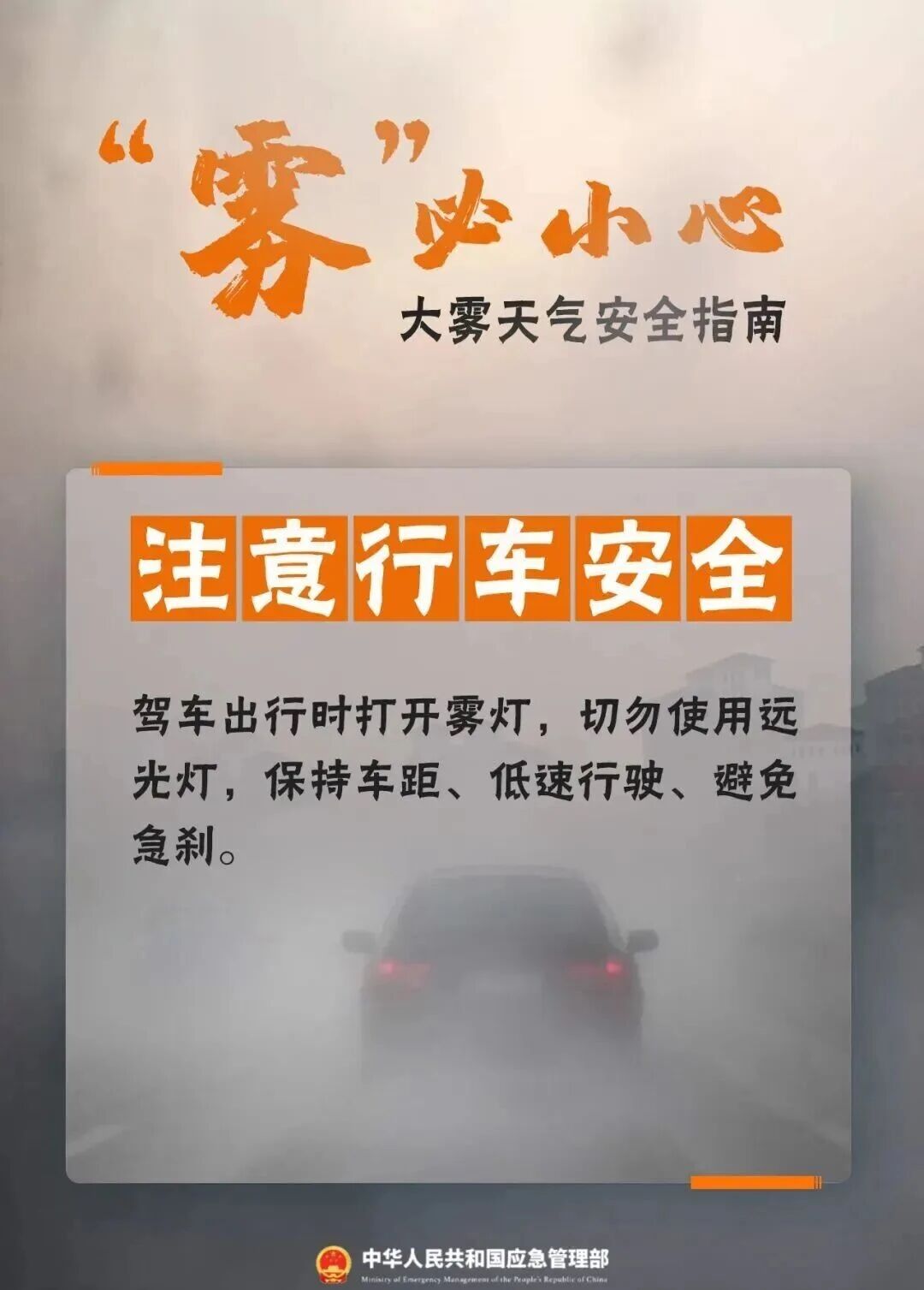 出行谨防滑倒摔伤:冰雪路面湿滑,能见度低,步行请放下手机,小步慢行,重心放低;非必要不骑车,若骑行需控制车速,避开结冰区域。