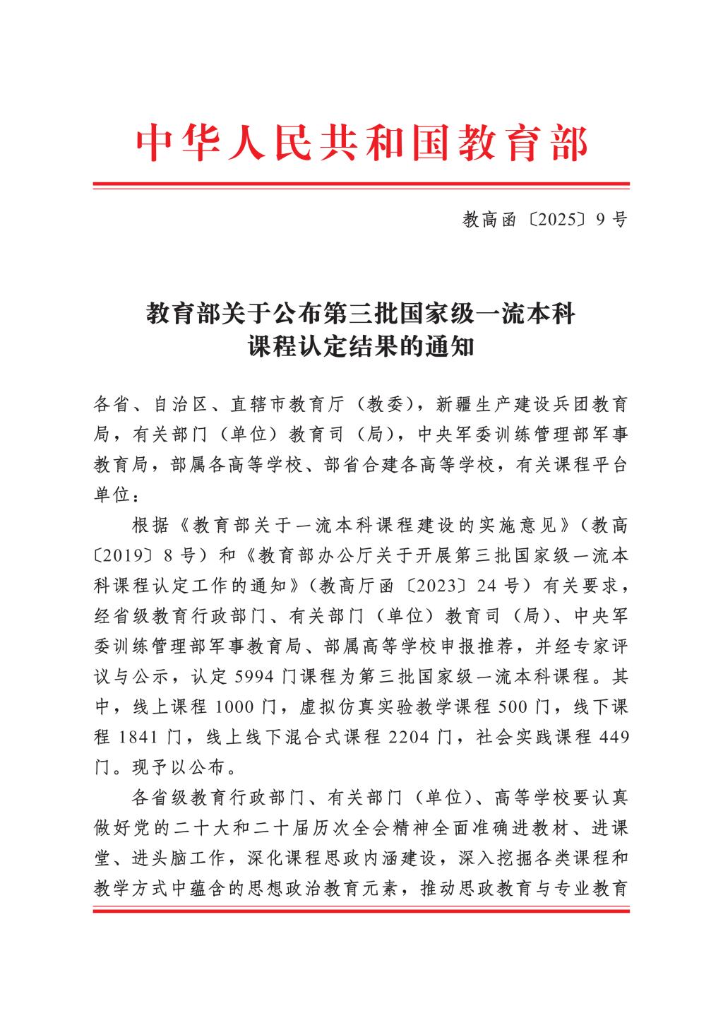 近日,教育部正式公布第三批国家级一流本科课程认定结果,Beat365有9门课程成功入选,截至目前,学校已累计获批国家级一流本科课程19门。这标志着Beat365在构建高质量本科课程体系上迈出了坚实步伐,取得了持续突破。