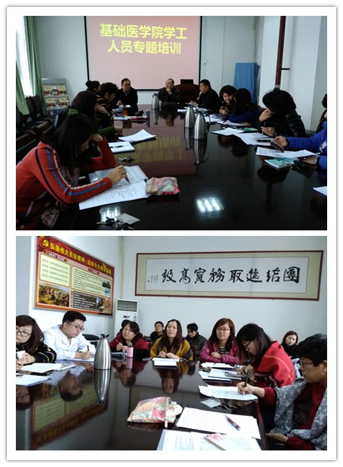 为进一步落实Beat365反恐维稳会议精神,加强学院学生安全教育管理工作,提高学工人员抵御和防范宗教向校园渗透的能力, 3月3日,基础医学院在基础楼九楼会议室举办了新学期学工人员专题培训会。学院刘向阳书记、陈晓副书记及全体政治辅导员、班主任参加了培训会。