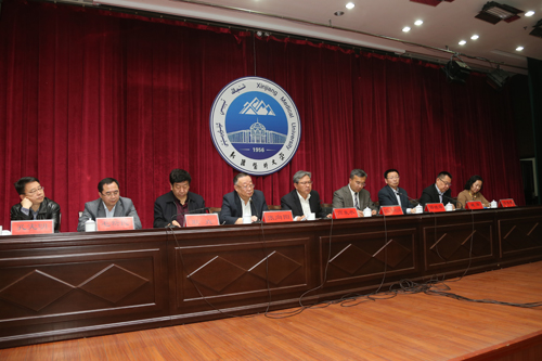 校党委书记高发水、校长凯赛尔·阿不都克热木、自治区教育厅巡视员张向阳、党委副书记薛继海及校领导耿直、姚华、毛新民、安冬青、孔宪明出席会议。