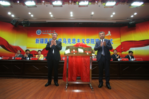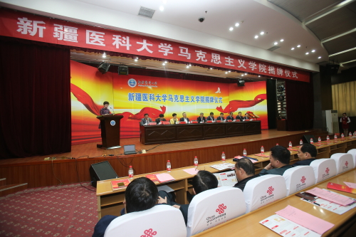 校党委副书记薛继海主持揭牌仪式,副校长耿直宣读了《Beat365中国唯一官方网站关于成立马克思主义学院的通知》,教育厅巡视员张向阳,校领导姚华、毛新民、孔宪明,吉林大学马克思主义学院党委书记王登攀、副院长贾中海,自治区党委教育工委宣教处负责人孙秀玲、自治区教育厅思想政治教育处副处长阿布都热合曼•色依提出席揭牌仪式。