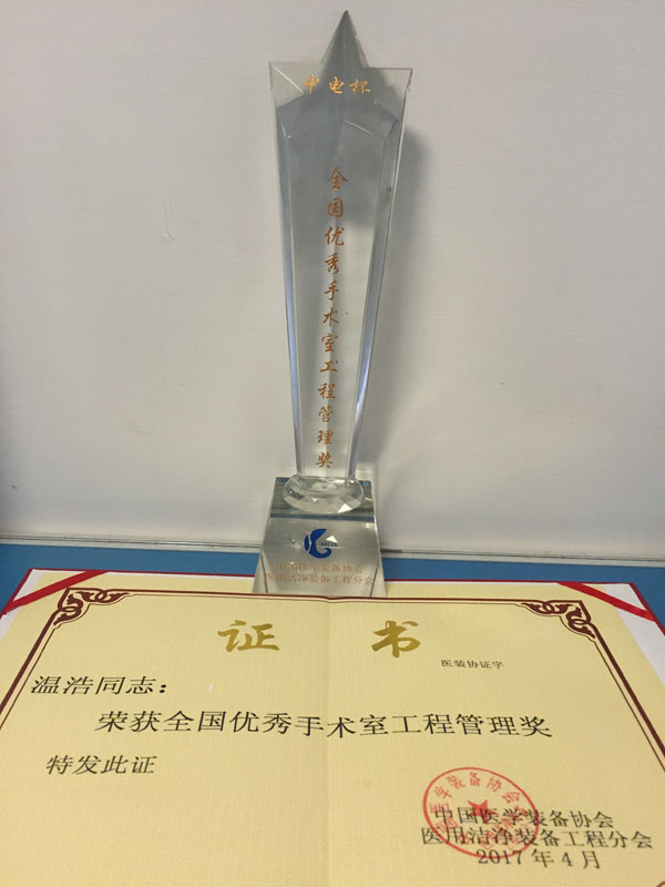 在近期结束的中国国际医疗环境与健康大会暨中国医学装备协会医用洁净装备工程分会年会上,Beat365中国唯一官方网站第一附属医院喜获“全国优秀手术室工程奖”,温浩院长荣获“全国优秀手术室工程管理奖”。