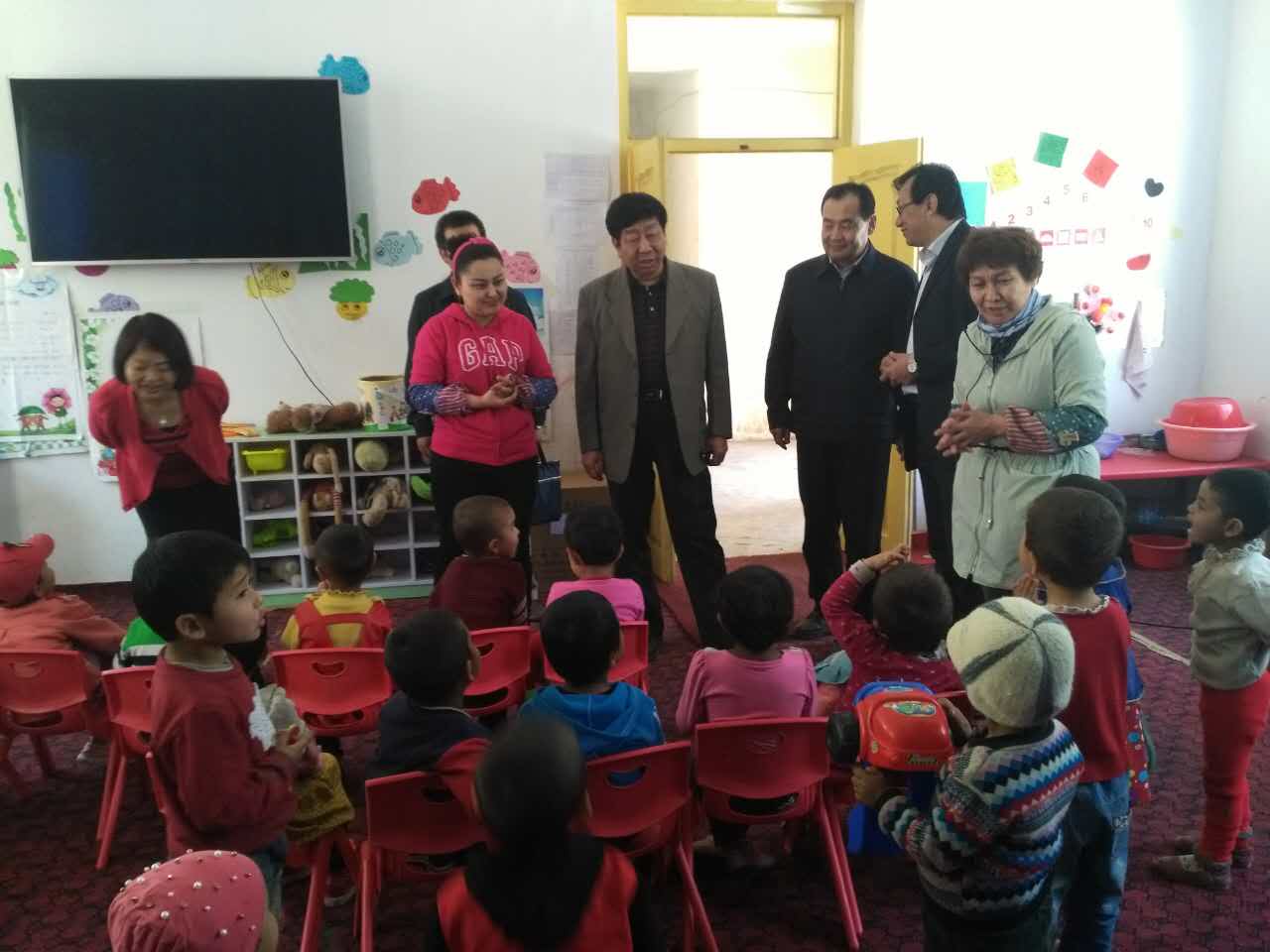在一附院巴夏克其村和铁热克阿依拉村工作队,耿直同志参观了村委会和村幼儿园,现场听支教干部教授双语课,了解幼儿园基础条件、授课情况、存在问题等,并与小朋友一起合影留念。对一附院两支工作队利用“民族团结一家亲”活动,组织专家为群众义诊,为群众解除病痛,凝聚民心,拉近情感表示赞赏。