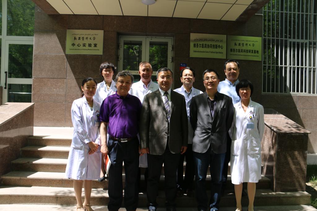 在3-5楼药剂学、理化测试实验平台,凯赛尔校长查看入驻课题组实验室及正在运行中的液-质联用质谱仪,询问了仪器运行及管理情况,并在大型仪器管理系统前查看各实验室运行状况,肯定了大型仪器实行网络化预约管理与课题组入驻实验室的管理模式。在6-7楼中医药、维吾尔医药平台,凯赛尔校长指出民族医药具有鲜明的区域特色,要利用现代技术助力民族医药发展。在8-14楼分子生物学、药理学、公共卫生平台,校长视察了生物标本管理、动物暂存间建设等情况。