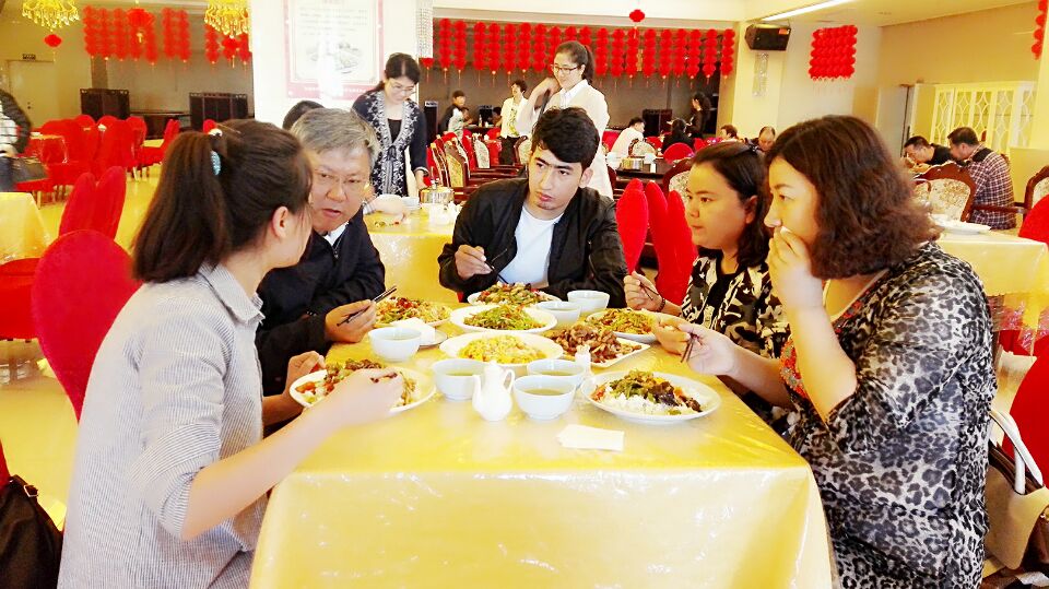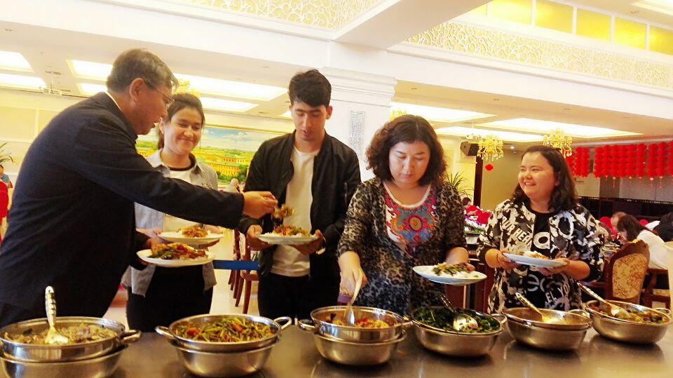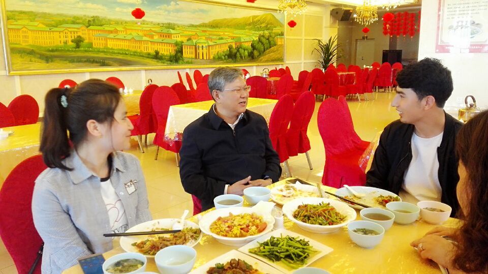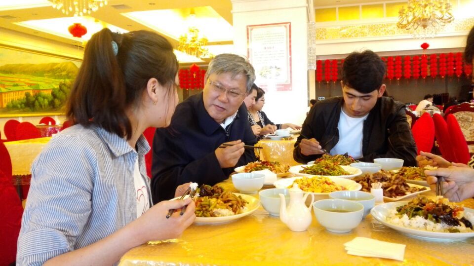 来自喀什叶城的亚夏尔•吐尔逊在得知自己被校领导邀请共进午餐时,还以为是个玩笑,一直不敢相信:“我们到行政楼办公室门口的时候心里还很慌,听到他说:‘孩子们进来吧!’那时候就特别紧张的进去了,然后主动和我握手,询问我们的家庭情况、学习生活情况,说了很多关心的语句。然后我才真的信了,他挺和蔼可亲的,感觉特别开心!因为第一次和高书记吃饭,所以我特别紧张,把以前不吃的蔬菜也吃光了。后来高书记自己给我们盛饭,挺多的,把那些都吃光了。”