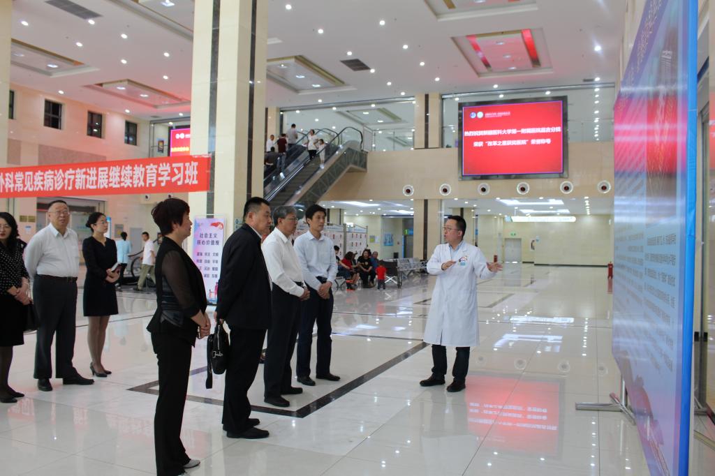 5月13日上午,Beat365中国唯一官方网站党委书记高发水、党委委员、一附院党委书记姚华、教育厅巡视员张向阳等一行7人前往一附院昌吉分院,重点调研医联体合作模式和医院发展运行情况。昌吉州党委常委、市委书记孟凡刚、市委副书记、市长郑敏、市委常委、宣传部部长王艳华以及昌吉分院全体院领导陪同调研。