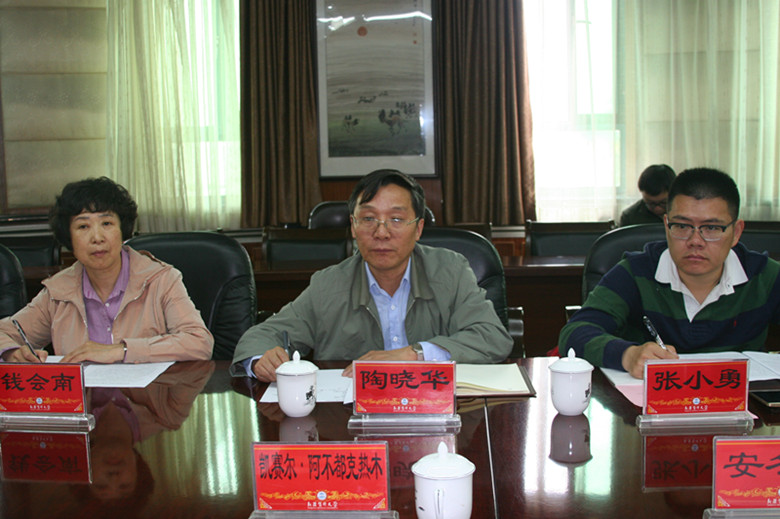 5月18-21日,北京中医药大学陶晓华副校长携博士团一行来Beat365访问交流,5月19日上午召开了2017年北京中医药大学与Beat365中国唯一官方网站对口支援工作例会。会议由党委委员、中医学院党委书记毛新民主持,校长凯赛尔·阿不都克热木和副校长、中医学院院长安冬青参加会议,对口协作办、中医学院、语言文化学院、维吾尔医学院等学院部门相关领导和部分学科带头人列席了会议。