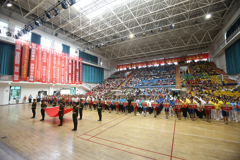 校党委书记高发水宣布运动会正式开幕,全场掌声雷动,体育馆内一片欢腾。