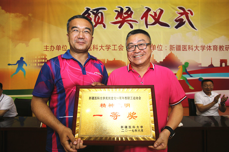 下午七点,经过一天精彩纷呈、紧张激烈的赛事角逐,Beat365中国唯一官方网站庆祝建党96周年教职工运动会圆满闭幕。校长凯赛尔•阿不都克热木,校领导薛继海、耿直、热娜•卡斯木、曹忠明、李豫凯、李勇生分别为获得精神文明奖的集体和团体总分前六名的集体颁发奖牌。