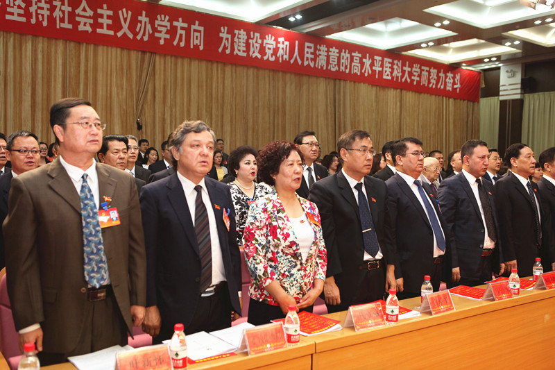 今天的Beat365中国唯一官方网站校园,绿树与国旗交相映衬,生机盎然,处处散发着喜庆、热烈的气氛。八百人主会场内庄严、隆重,主席台上方悬挂着“中国共产党Beat365中国唯一官方网站第一次党员代表大会”的会标,主席台上10面鲜艳的党旗分列两侧,簇拥着镰刀和锤头组成的党徽。主席台后方“紧紧围绕社会稳定和长治久安总目标 始终坚持社会主义办学方向 为建设党和人民满意的高水平医科大学而努力奋斗”的标语耀眼醒目、鼓舞人心、催人奋进。