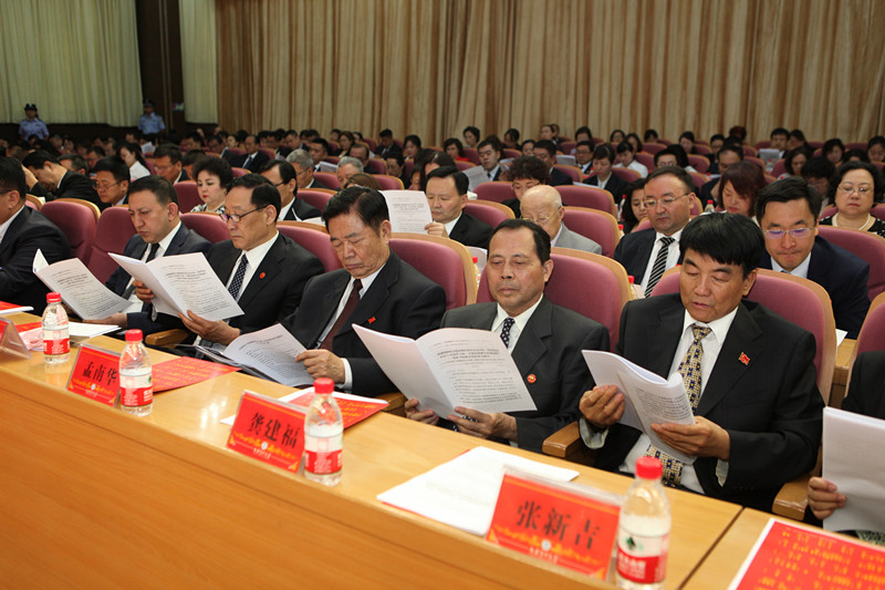 大会主席团成员高发水、凯赛尔•阿不都克热木、亚克夫•吐尔地、薛继海、安冬青、贾文霄、周耀治、热娜•卡斯木、曹忠明、赵翠芳、李豫凯、李勇生、张向阳、耿直、温浩、孙广志、薛峰、姚华、毛新民、吕新、黎瑛、徐生智、古扎丽努尔•阿不力孜在主席台就座。