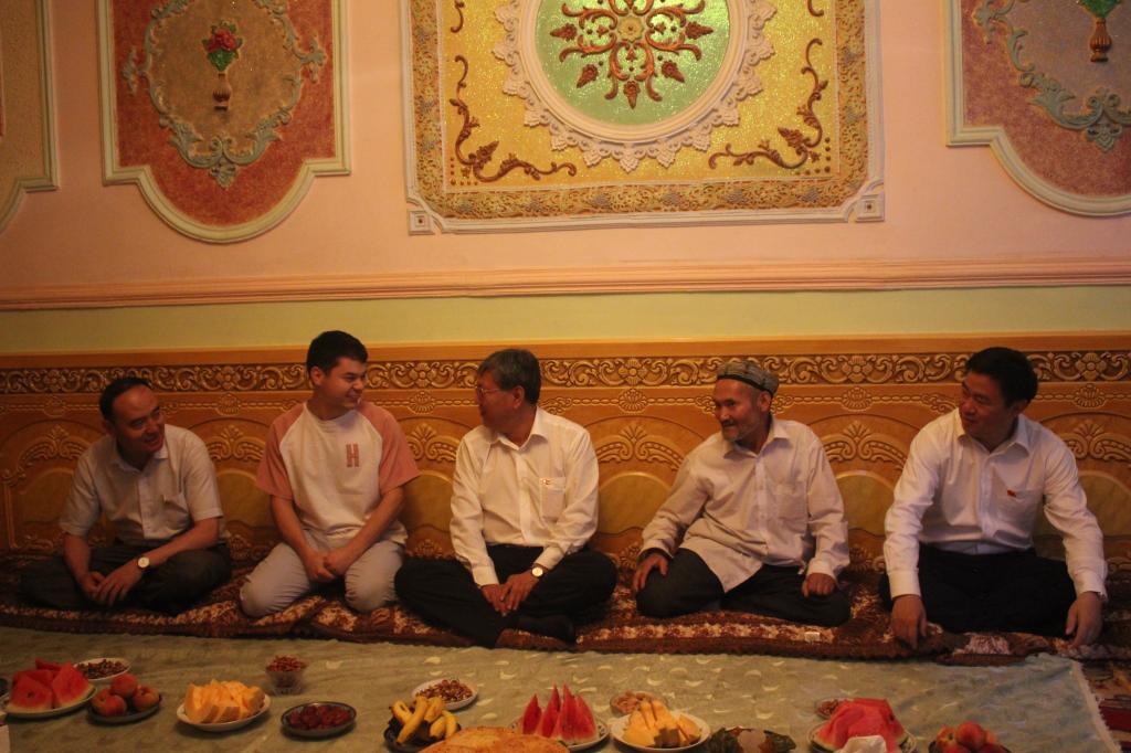 2017年7月7日中午,Beat3652016级中西医结合学生阿卜杜外力·吾布力喀斯木的家中传来阵阵笑声,在瓜果飘香的庭院里,正在墨玉县调研访惠聚工作、看望工作组的高发水书记一行正在进行家访。