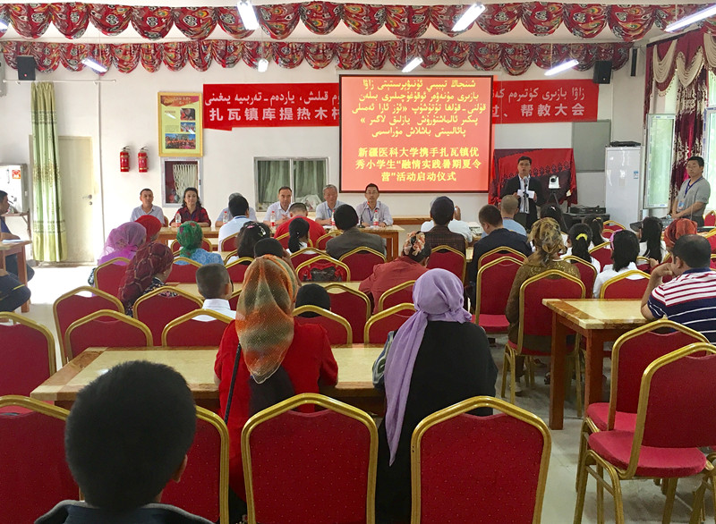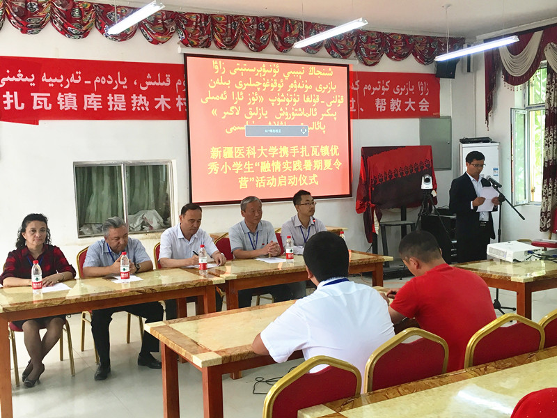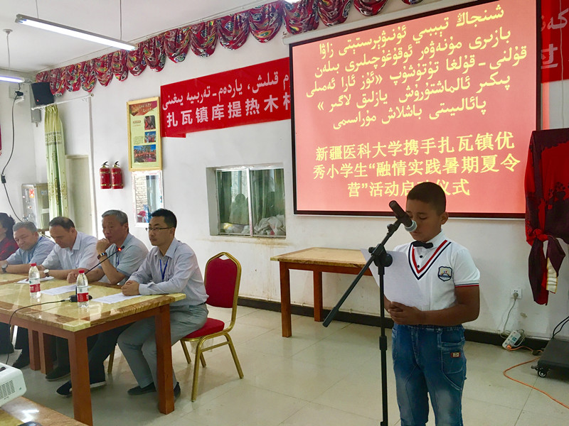首先,Beat365中国唯一官方网站驻库提热木村工作队队长赵鸿锴介绍了此次夏令营活动的基本情况。Beat365中国唯一官方网站团委积极响应自治区党委开展各民族文化交流交融活动和自治区团委工作部署的要求,协同Beat365中国唯一官方网站驻墨玉县扎瓦镇8个住村工作队,从所驻村的学校中筛选出30名思想品德端正、学习成绩优秀的小学生,组成了此次“融情实践暑期夏令营”。夏令营的营员们将与Beat365中国唯一官方网站子女学校的优秀学生代表“结对子”,共同开展一系列主题活动:参观新疆博物馆、新疆科技馆、乌鲁木齐市红山公园、乌鲁木齐市海洋馆以及Beat365中国唯一官方网站等高等学府,在耳濡目染中,了解新疆日新月异的社会发展成就、领会现代文化的魅力、感悟高校知识殿堂的律动、体味民族团结一家亲的温暖……随后,夏令营的带队教师和优秀学生代表进行了主题发言,来自库提热木村小学的依力亚斯·阿力马斯兴奋地说:“这次夏令营对我来说,是一次难得的机会。我一定会遵守纪律,认真学习,回来后,把我的经历分享给同学们。”