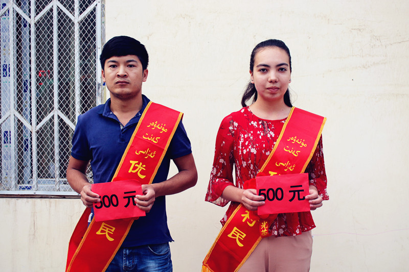 7月24日周一,阿克塔木村像往常一样照例举行升国旗仪式。不同的是,今天要表彰在协助村两委开展各项工作中表现突出的优秀学生。村支书宣读表彰人员名单并向他们表示感谢,号召大家向孩子们学习,积极履行村民义务,投身村级各项事务,共建美丽阿克塔木村。当鲜红的绶带佩戴在六名学生的胸前,孩子们的眼底难掩自豪和激动。工作队拿出提前准备好装有伍佰元现金的信封交在孩子们的手中,以感谢他们为村子发展做出的努力,希望他们刻苦学习,将来报效祖国。工作队长还自掏腰包,为五小队贫困学生茹柯耶·如则赫依提、六小队阿卜杜喀迪尔·阿帕尔各送去了伍佰元现金,帮助他们解决燃眉之急。