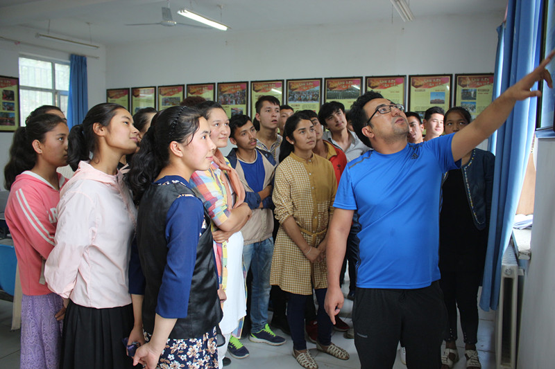 7月19日晚,青岛大学美术学院大学生们来到Beat365中国唯一官方网站驻托格拉克麻扎村小学生中间进行绘画小课堂活动。本村30多小学生聆听了一堂高水平的绘画培训。