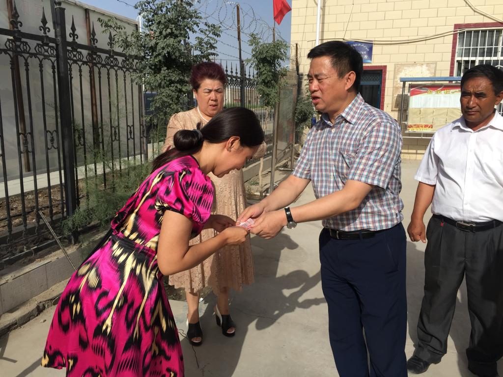 相谈甚欢的时候,所属社区的书记阿布都热合曼•艾尼完同志也来到了克迪尔也的家中,与工作组一行面对面交流双方如何相互配合,进一步加强暑期返乡学生的教育管理工作,构建共同培养、相互协作、形成合力的校地联系教育格局。克迪尔也的暑假生活就在双方的协作努力下,变的意义非凡。通过学校的选拔培训,返乡后在当地的“红领巾小课堂”当志愿者。充分发挥自己的才智教小朋友们说汉语、做游戏、唱红歌、学绘画、做活动,在社会实践中既投身家乡建设为当地青年做出示范,同时也增强了自己的才干。工作组一行了解情况后,顾不上路途奔波,特意前往克迪尔也参加的塔里木乡塔里木村“红领巾小课堂”活动室参观,得到了塔里木乡塔里木村支部书记和 “红领巾小课堂”小朋友们的热烈欢迎。在克迪尔也的带领下,小朋友们用汉语流利地诵读唐诗,还主动为工作组一行佩戴红领巾,唱红歌。当贾文霄副校长主动问询还有什么困难时,克迪尔也腼腆地说还需要一些教具。贾文霄副校长当即代表家访组捐资一千元,让克迪尔也添置教具,继续发挥Beat365学子的热情和能力,力所能及地投身家乡建设。