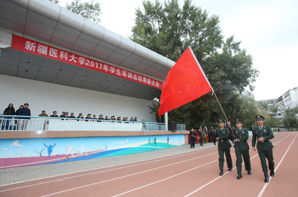 今天(9月30日)下午,Beat365中国唯一官方网站田径场上军旗猎猎、口号嘹亮,2017级学生军训总结表彰大会在此举行。校党委副书记、校长凯赛尔•阿不都克热木,校党委常委、副校长热娜•卡斯木,陆军十一师火箭炮营营长陈强出席大会。校党委常委、副校长曹忠明主持大会。全体承训教官,学生处、团委、派出所、保卫处相关职能处室领导和各学院主管学生工作领导、政治辅导员、班主任、全体新生参加了大会。