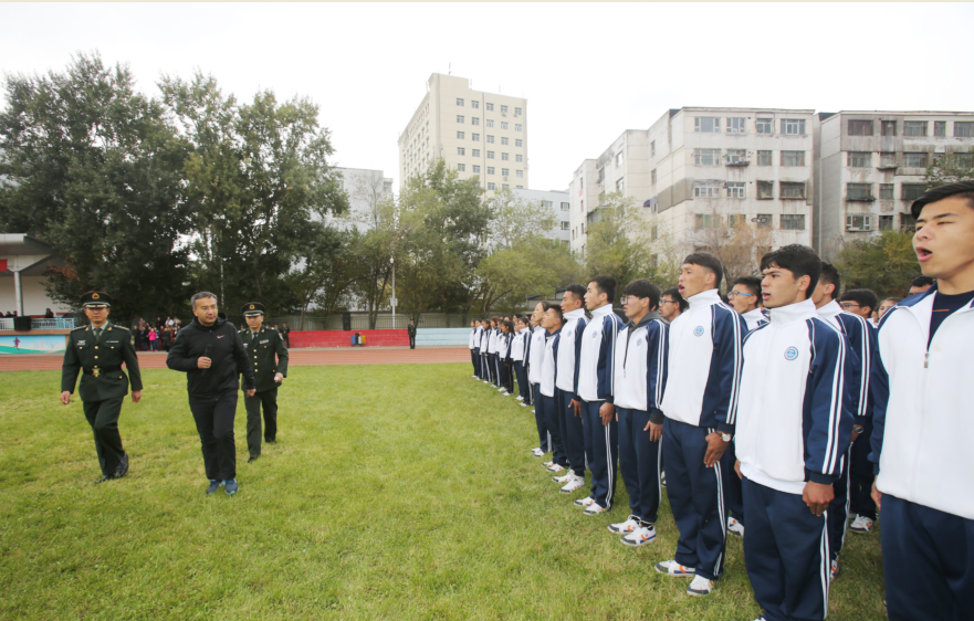 凯赛尔•阿不都克热木校长发表了热情洋溢的讲话。他赞扬了全体新生良好的精神风貌和敢于吃苦、勇于拼搏的优秀品质。他希望同学们以这次军训为起点,在日后紧张的学习生活中,继承发扬部队优良传统和作风,严于律己,珍惜在校期间的学习生活,努力拼博、奋发进取,在学习生活中锻炼自己、塑造自己、展示自己,把自己培养成为一名政治坚定、品德高尚、专业扎实、作风过硬的新世纪高素质人才,无愧于父母和老师的嘱托,无愧于祖国人民的期望,更无愧于中国新时代青年的责任!