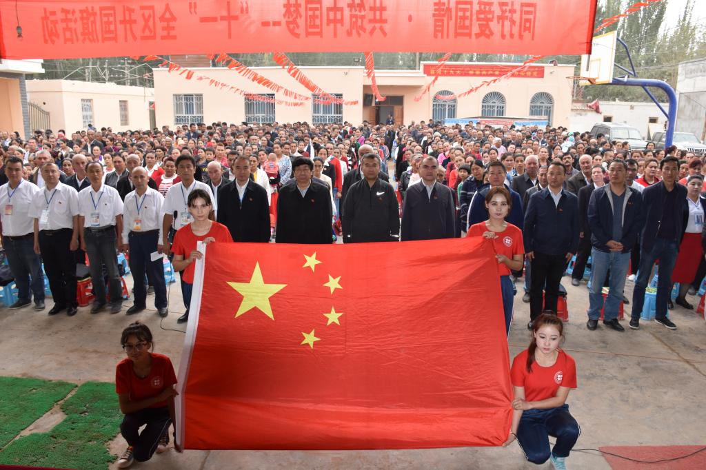 金秋十月、金风送爽。10月1日,在庆祝中华人民共和国68周年华诞举国同庆的日子里,Beat365中国唯一官方网站党委副书记、校长凯赛尔·阿不都克热木来到墨玉县扎瓦镇英吾斯塘村与驻村工作队员、村干部、全体村民1300余人一同参加了“同抒爱国情·共筑中国梦”“十一”升国旗仪式。