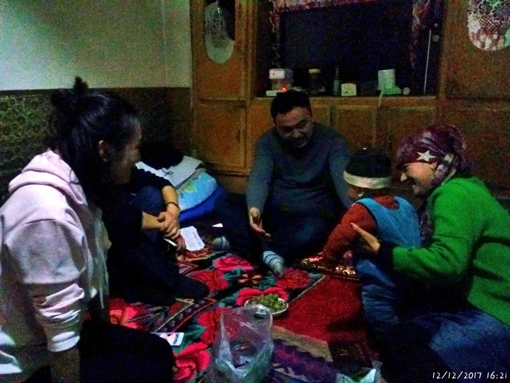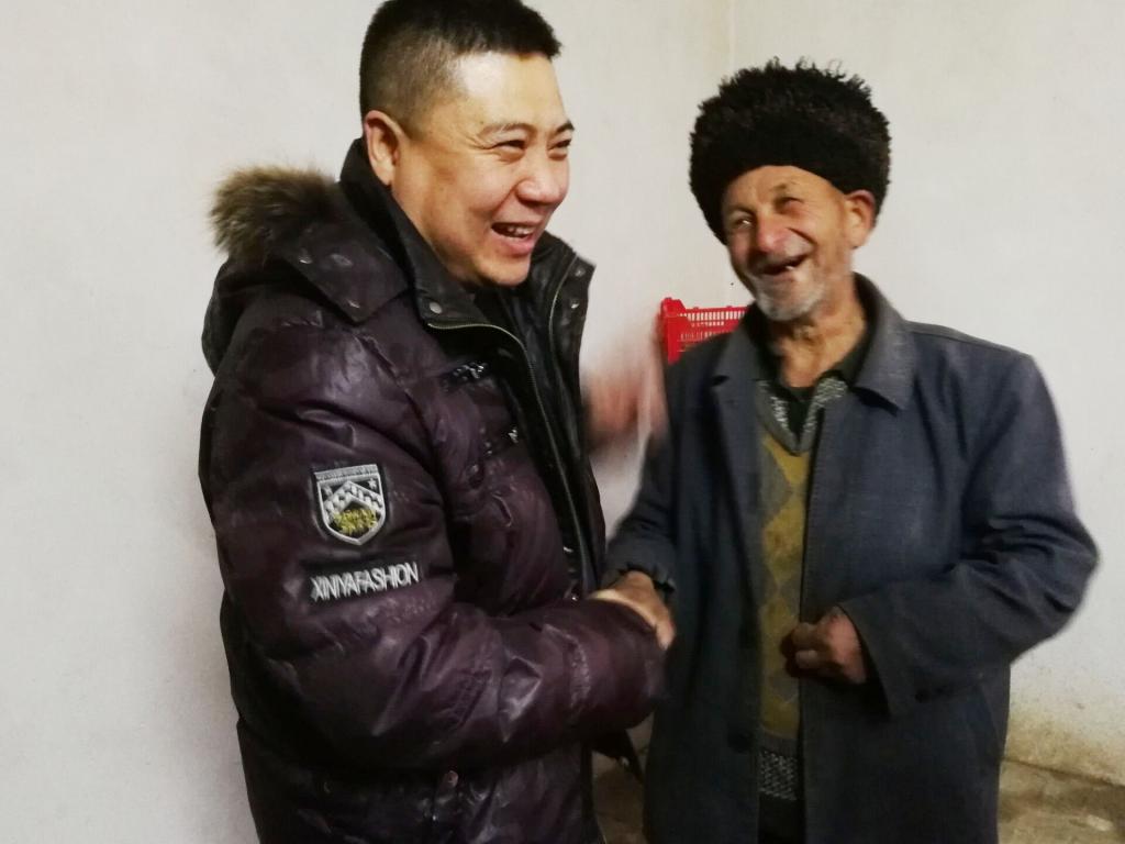 在库提热木村,来自新医大一附院组织干部科的王郁、介入放射科的陈实、手术室的汤婷、透析室的夏热甫古丽和学生科房富利组成了一个5人结亲小组。在结亲干部王郁的亲戚—71岁的亲戚吐热汉•艾力大妈家中时,丰盛的食物让大家眼角湿润。听说结亲干部们要来,吐热汉大妈早早打了馕用布包起来,为结亲干部们准备了自己舍不得吃的香蕉、橘子和干果,将家中最暖和的房间收拾干净,准备好了炉子和几床厚实的被子。