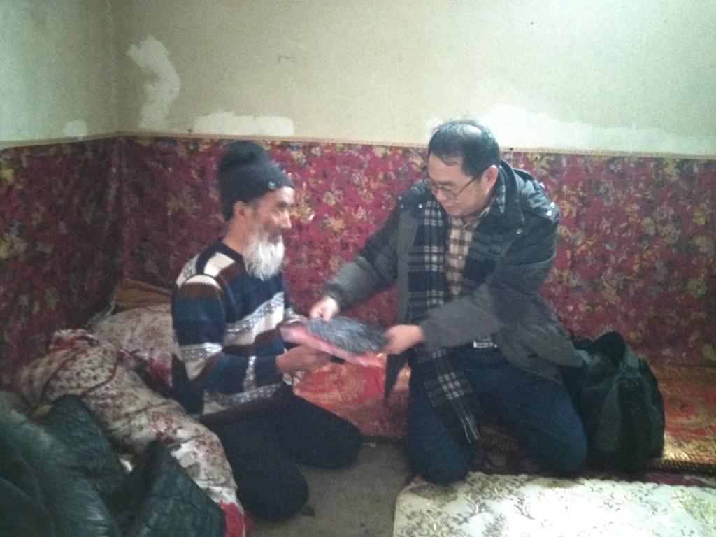 17日傍晚,护理学院结亲干部李熙明得知亲戚居麦提尼亚孜·托合提的妻子因感染肺结核住院近一周,居麦提尼亚孜的子女又不在身边,老人的晚饭怎么办?于是,他盛满一盘抓饭,挑了几块瘦肉,给老人送到了家里去,吃着结亲干部寒夜里送来的热气腾腾的抓饭,老人不禁流下了眼泪。第二天一大早,李熙明带上早就准备好的肺力咳合剂和祖卡姆颗粒和同组的其他三位结亲干部赶去医院。病床上,插着吸氧管的亲戚虽然不能说话,眼神里充满了感激。李熙明又反复叮嘱子女们要监督母亲遵照医嘱,安心养病,早日康复。同病房的老乡们看见之后,都竖起了大拇指,对着居麦提尼亚孜的妻子说“你们的结亲干部亚克西”!