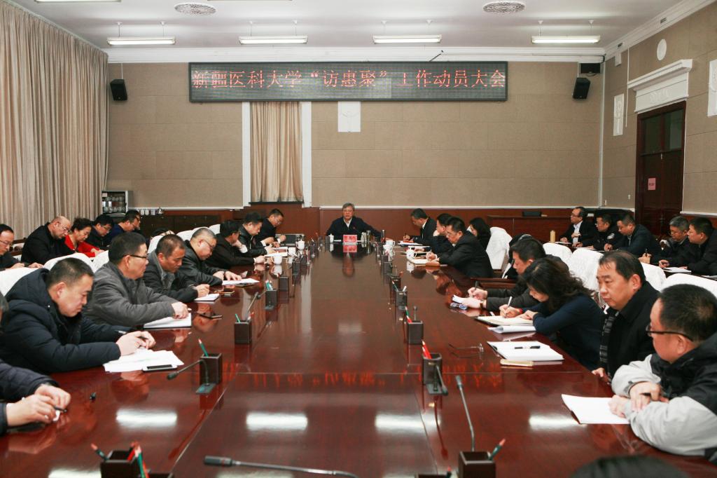 校党委书记高发水作动员讲话,校党委副书记、校长凯赛尔•阿不都克热木提出相关要求,薛继海副书记主持会议并传达了自治区党委《关于加强自治区“访民情惠民生聚民心”驻村工作力量的通知》精神。