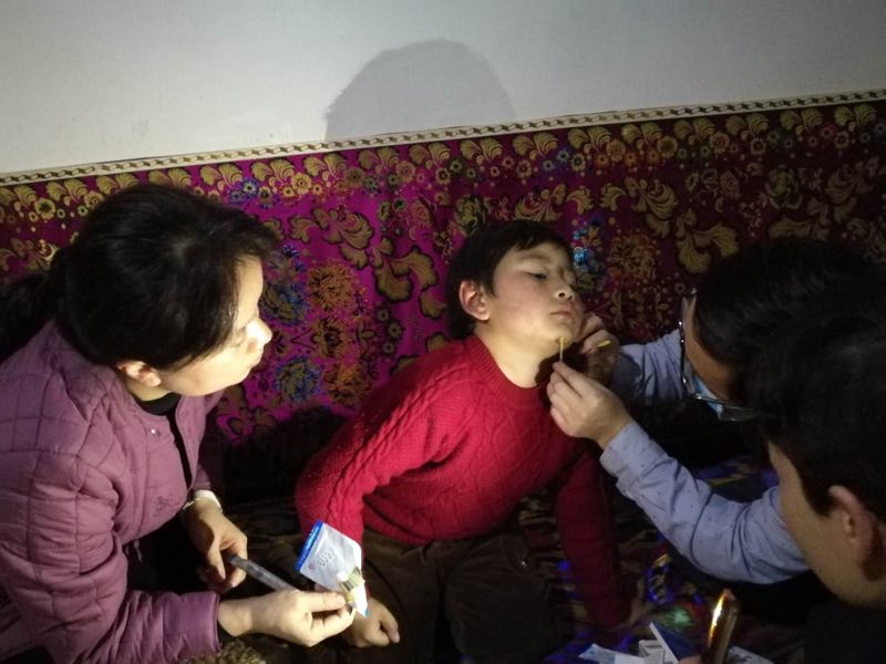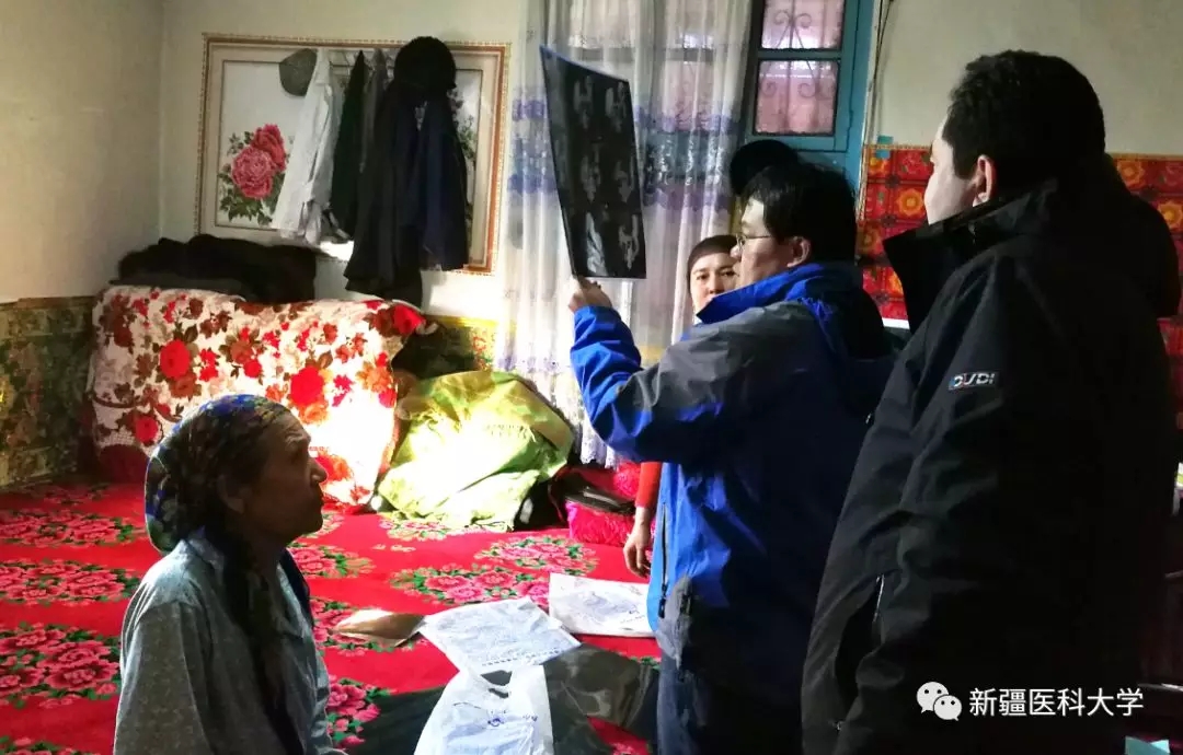 12月25日,在墨玉县扎瓦镇胡木旦村,我们来到Beat365中国唯一官方网站结亲干部阿巴拜克力•米吉提的亲戚吐迪尼亚孜汗•依斯刊达尔的家,62岁的吐迪尼亚孜汗老人时常有头晕目眩的症状,结亲干部、援疆医生胡玉良院长为她测量了血压,并详细为她讲解了服药方法和注意事项。走进亲戚古瓦尔妮萨•麦麦提吾普尔家时,我们发现亲戚躺在床上,身体不适。新医大二附院的李国华副院长仔细检查了她的病情,并查看了全部的MRI片和CT片,援疆干部胡玉良院长查阅了全部病历,并做了重点拍照,准备带回去做进一步研究,用细致的诊断和指导,给亲戚切切实实的关怀和帮助。