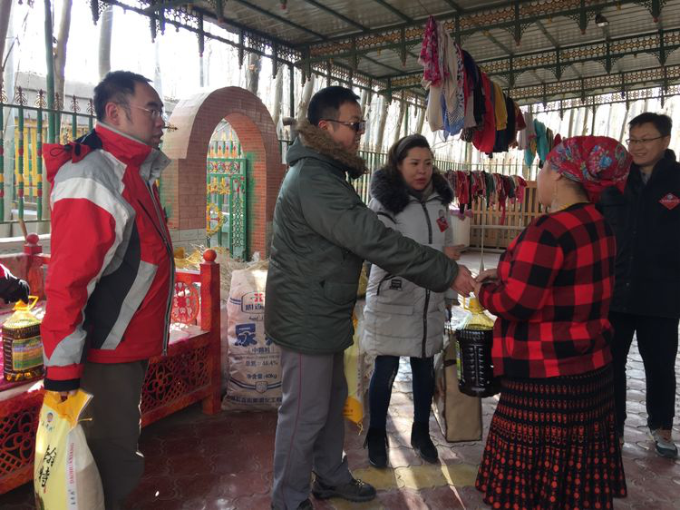 12月26日上午,Beat365中国唯一官方网站第六附属医院“结亲周”活动第五批队员在领队吴国荣的带领下,共捐款3600元为和田墨玉县扎瓦镇胡木旦村九户贫困户送去大米、清油、药物等慰问品,并开展结亲走访工作,把结亲干部的温暖和关怀送到亲戚们的心坎上。