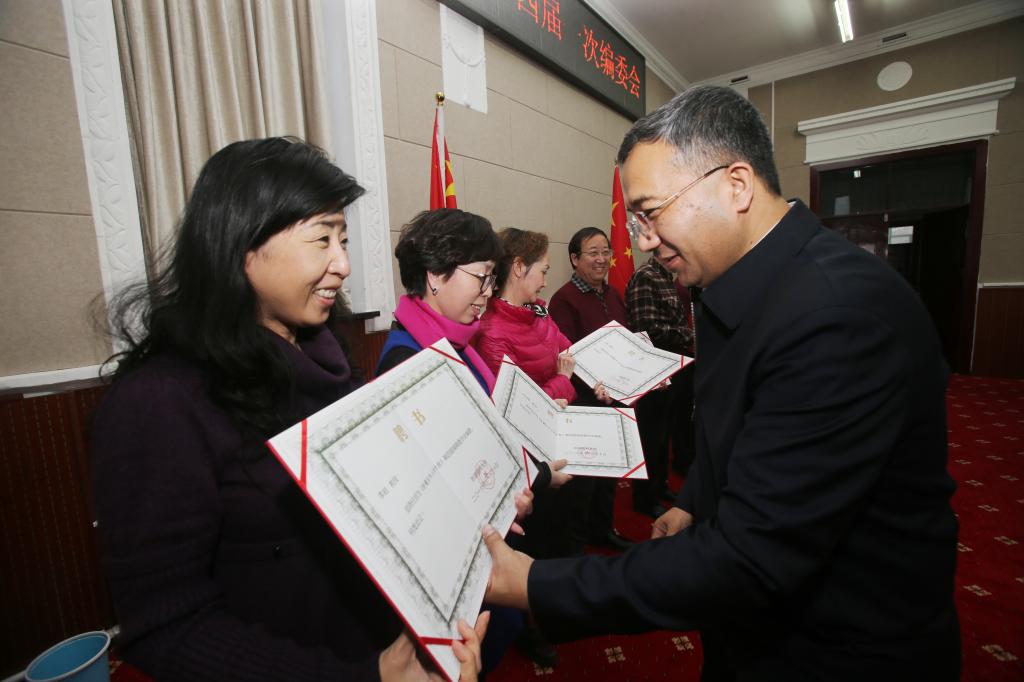 凯赛尔•阿不都克热木校长给新一届编辑委员会委员颁发了聘书。