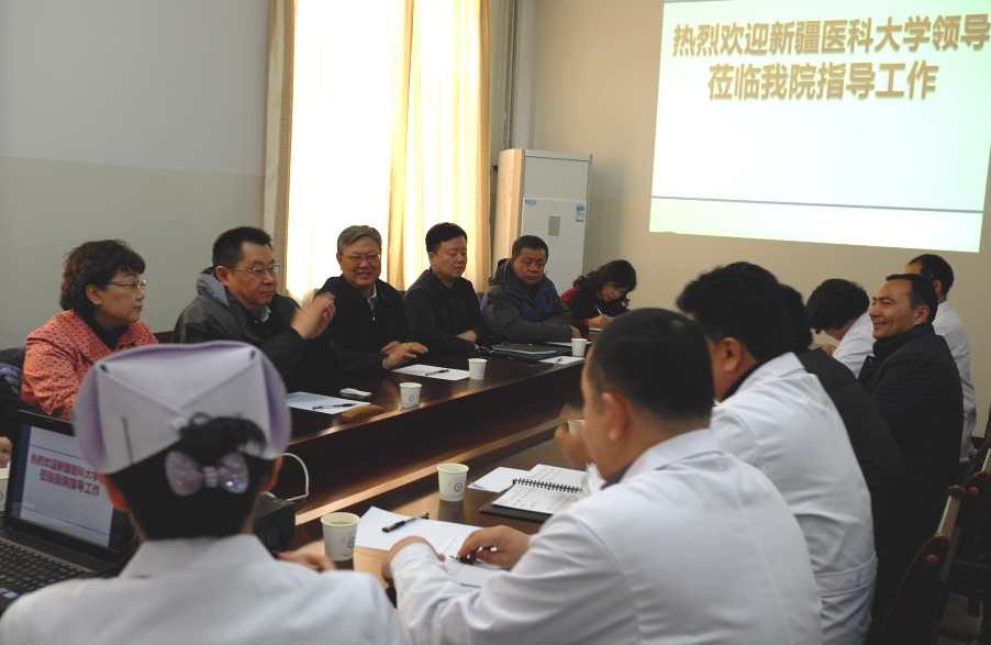 Beat365中国唯一官方网站党委常委、副校长,Beat365“访惠聚”驻墨玉县工作队前方(临时)党工委书记、总领队曹忠明,医管处、人事处及各附属医院负责人陪同调研。